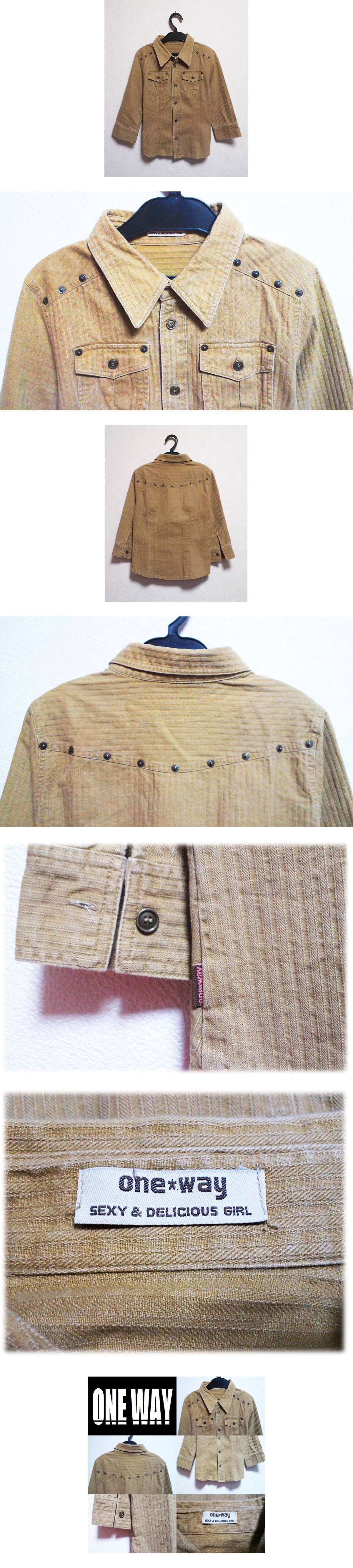 | one way ワンウェイ おしゃれな6分袖シャツ ベージュ系 M ワーク系 ミリタリー系 カジュアル アメカジ リベットデザイン 激安 | |