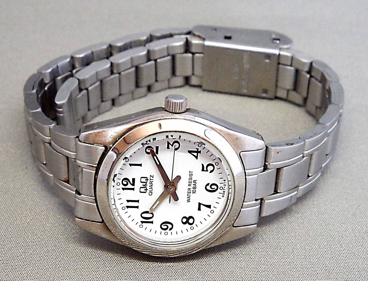 EU-9723■Q&Q レディース腕時計 3針 丸型 中古 重さ 49g ★商品の程度はBランクです。ランクについては下記の「程度注釈」にてご確認下さい。★ ■商品説明■ USED品です。使用感あります。ガラス面・ベゼル・裏蓋・ケース・バンドには若干の小キズ・スレ・汚れがあります。特筆すべき損傷も無く、比較的良好な状態です。 ディスプレイやデジカメの特性上、実物と多少色が違うことがあります事をご了承ください。 また、バンドの腕周りは充分ご確認ください 。 ■仕 様■ ★防水10BAR ★裏蓋材質:SS ★バンド幅:約1.3cm ★腕周り:可変(現状15.0cm) ★文字盤ケース 直径2.4cm 〔手採寸〕 ★重さ 49g ★ 3針 ★クォーツ 平成31年4月 動作確認済み ★ケーシング:中国 ★型番:2035 (内) ■写真以外の付属品などはありません。 ■『クォーツ時計(電池式)』につきましては、当店では、出品時に動作確認(機能・電池切れのチェック含む)をしておりますが、電池の残量は不明です。 電池も中古ですので、保管~お客様のお手元に届くまでの期間に「電池切れ」になることもございますが、原則として、そのまま発送させていただきます。 (「電池切れ」の場合は、最寄りの時計店で、お客様負担にて電池交換していただくことになります。) 当店では、お客様に時計をお安くご提供させていただくため、 電池の新品交換費用(通常、約1,000円)は、価格に組み込んでおりませんので、 無償での電池交換はお受けできません。 この様な条件を理解された上で、ご入札をお願い致します。(ジャンク品を除く) ■あくまでも中古品扱いですので、記載以外のダメージもある場合がございます。 保存期間があったため、お手入れが必要な場合がございます。 ■直接店頭にてお品物をご覧になりたい場合には、事前に質問欄よりその旨ご連絡をお願いいたします。ご連絡をいただいていない場合にはお見せできない場合がございます。 ★程度注釈★ ●Nランク… 完全新品:箱や紙袋の有無は商品によって異なります。 ●Sランク… 展示未使用品:新品ではないが、使用感がほとんど伺えない商品です。 ●Aランク… 中古品:小キズやスレなどが若干ありますが、全体的には綺麗な商品・美品です。 ●Bランク… 中古品:一般的な中古商品。明らかな使用感があり、小キズ・スレ・汚れも目立ちますが、まだまだ充分ご使用できる商品。平たく言えば街中でよく見かけるくらいの状態です。 ●Cランク… 中古品:小キズ・スレ・汚れもかなり目立つ使い込んだ商品。状態は正直悪いですが、使用には充分耐えられ、お値打ち価格で入手できる商品。とにかく安くほしい!と言う方にオススメです。 |