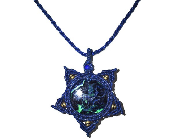 ★地球のスタープラネット★天然石アズロマラカイト★マクラメ編み蝋引きネックレス★ハンドメイドペンダント★男女兼用★kamesan