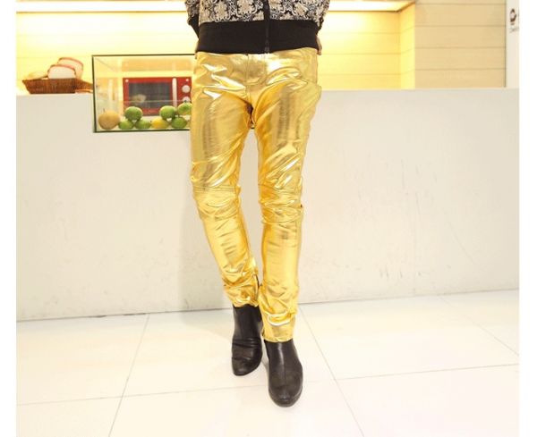 新品!革パンツ メンズ 皮パン 革パン スキニーパンツ ダンス 歌手レザーパンツ ペンシルパンツ スリムタイト ストレッチ ゴールド XL