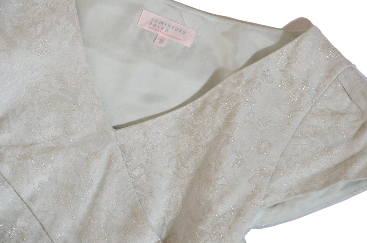 結婚式やパーティに!組曲プリエ KUMIKYOKU PRIER 水色×ラメジャカードドレス ワンピース 2/M br>