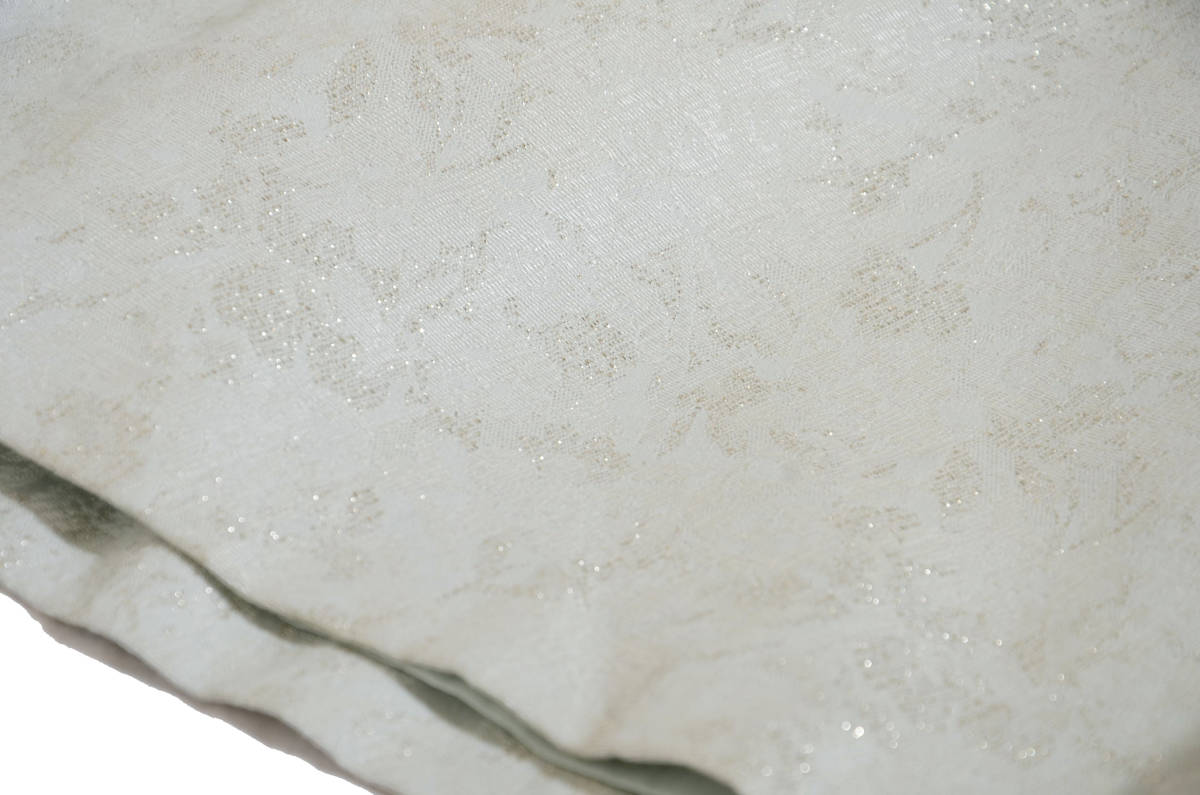 淡い水色のフラワージャカードにシルバーのスリット糸を織りこんだ