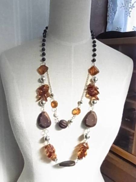 訳あり安価 ビーズストーン使い 2連風のお洒落デザインのネックレス▲