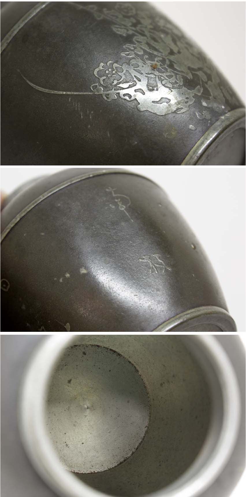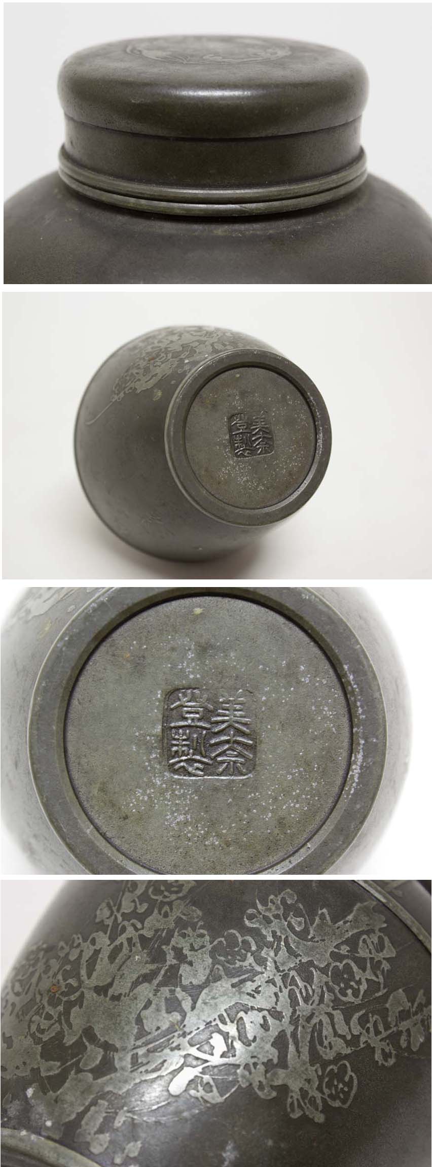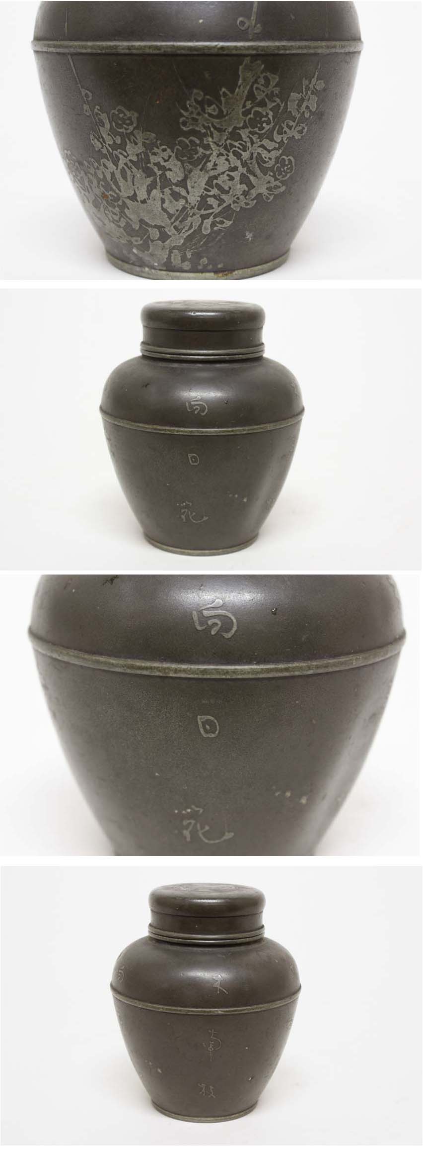 * サイズ・・・高さ:105 径:85 ㎜ * 重量(約)・・・325g ・全体的に多少アタリと凹み(1箇所大き目)とスレあがあります。 底に「美奈登製」の銘があり。 詳細は掲載写真をご参考下さい。 ご理解いただける方のみご入札をお願いいたします。 ※寸法に若干の誤差が生じる場合もございます。目安としてご参考下さい。 ※画像につきましては、PC環境により実物と色合い等、若干異なる場合がございますので、予めご了承ください。 |