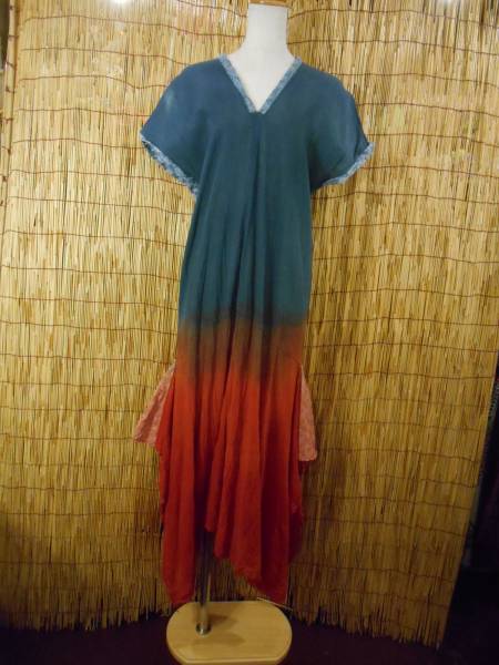 ①グラデーションカラー マーメイド風ロング丈 変型ワンピース
