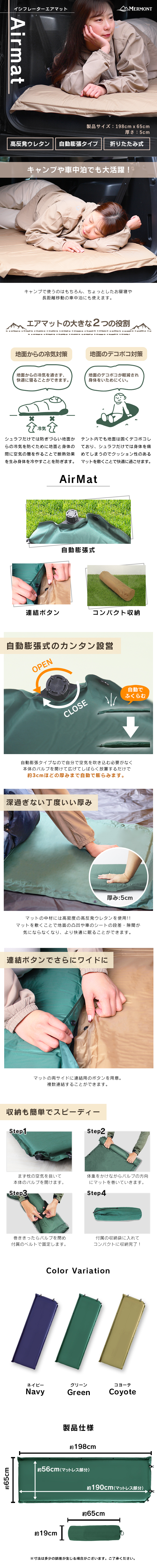 | [ 自動膨張式 インフレーターマット カラーラインナップ ] | |||