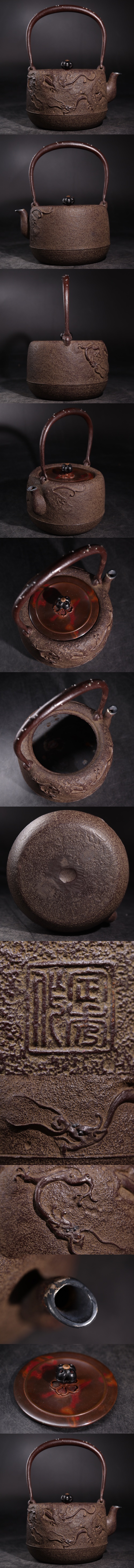 | 在銘 鉄瓶 龍紋 銀象嵌 銀口 急須 容量約1050ml / 湯沸かし 茶器 煎茶道具 煎茶飾 .G3863 |