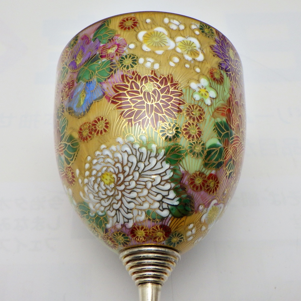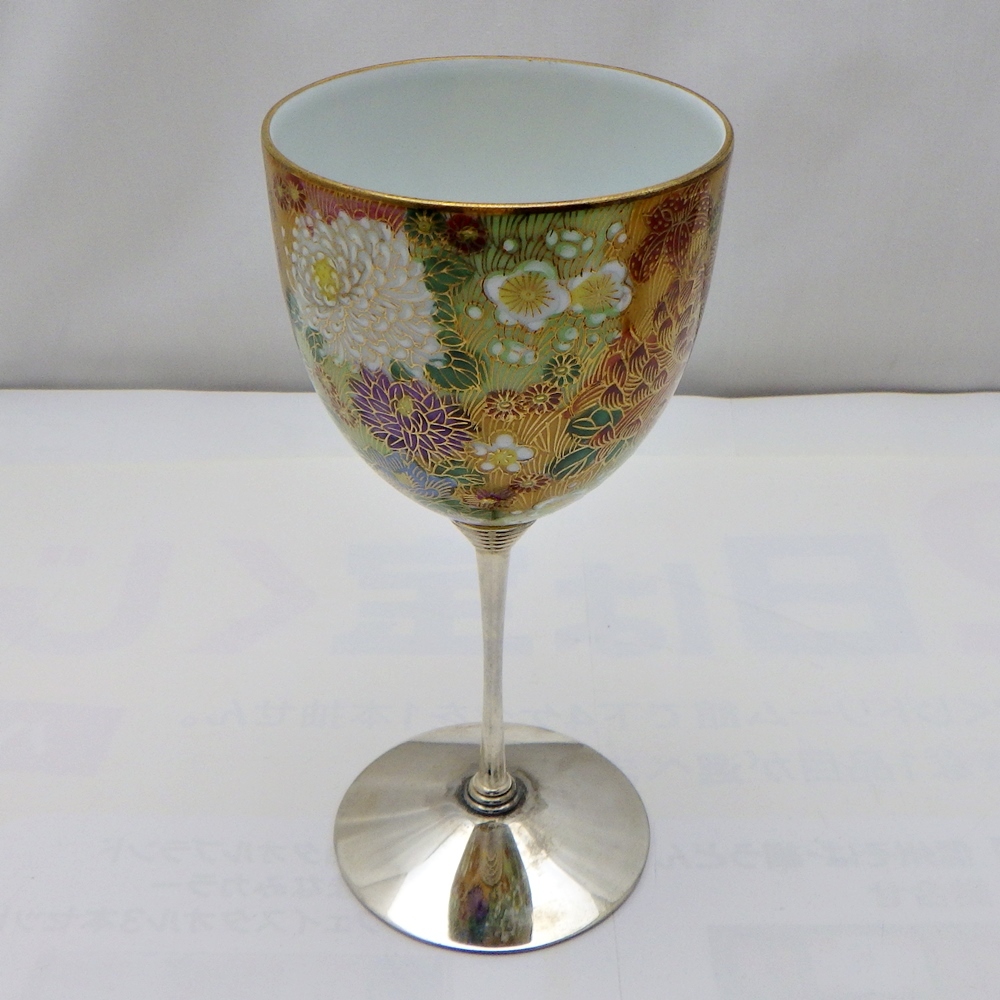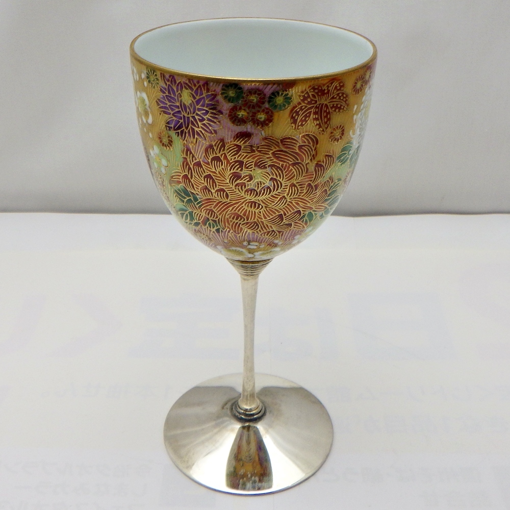 商品名: 九谷物語 金花詰模様 ワイングラス(シルバー)&カクテルグラス(ゴールド)