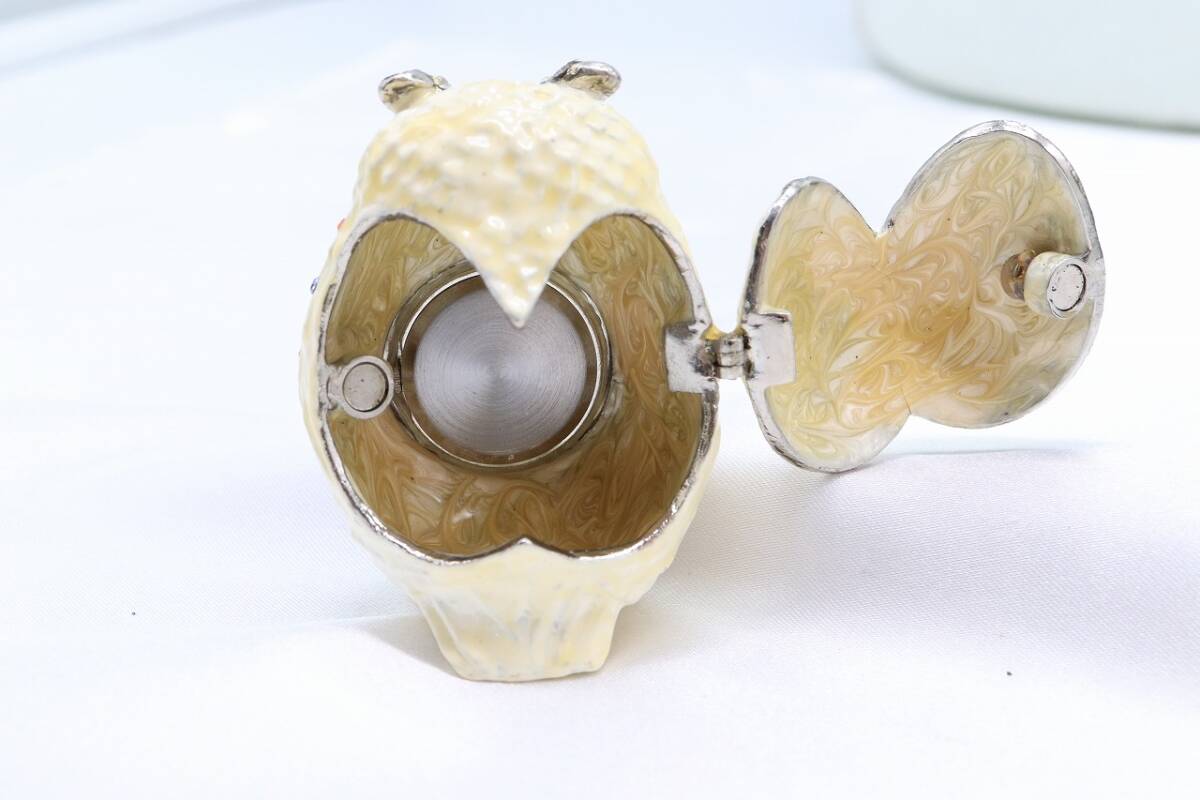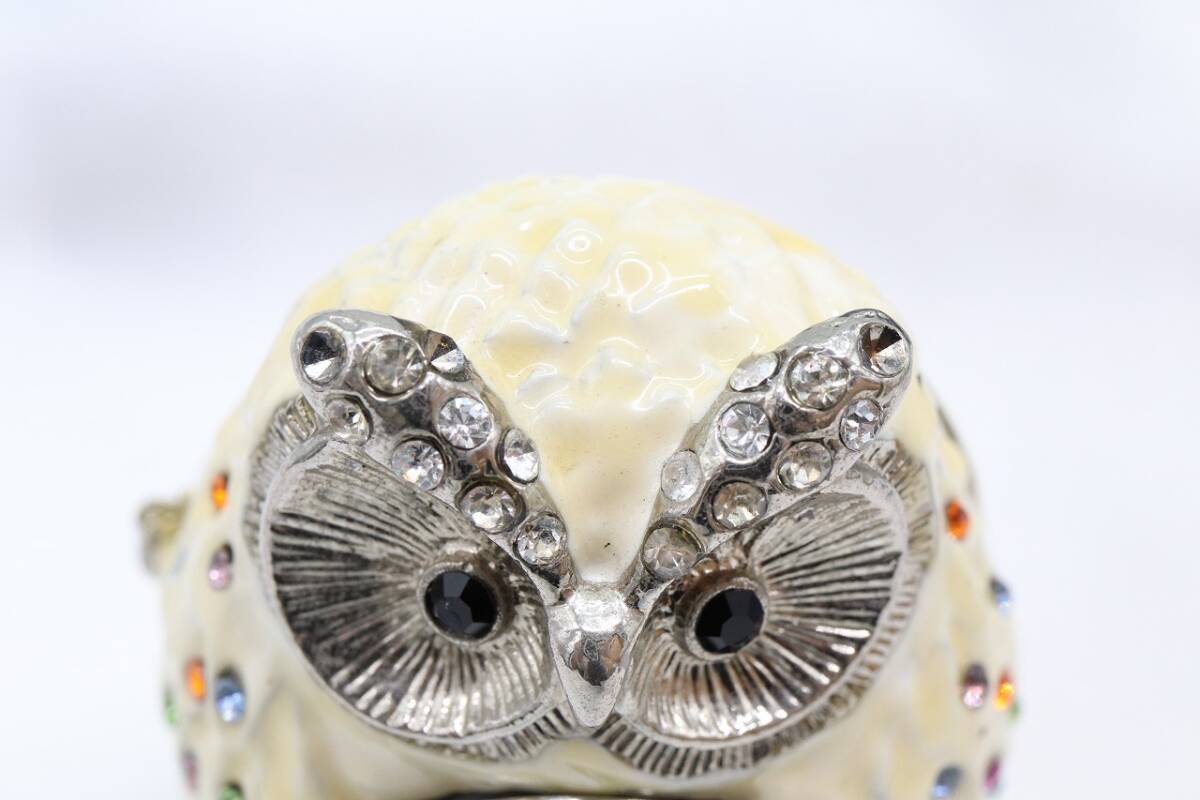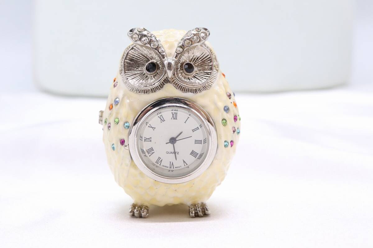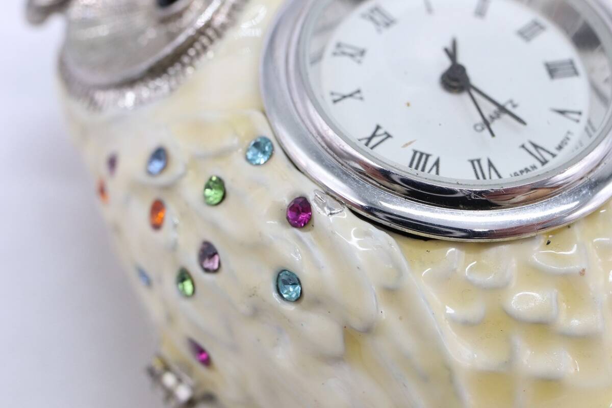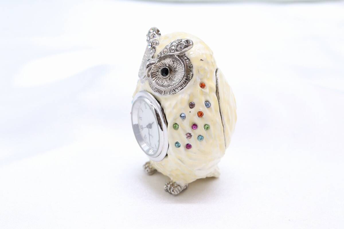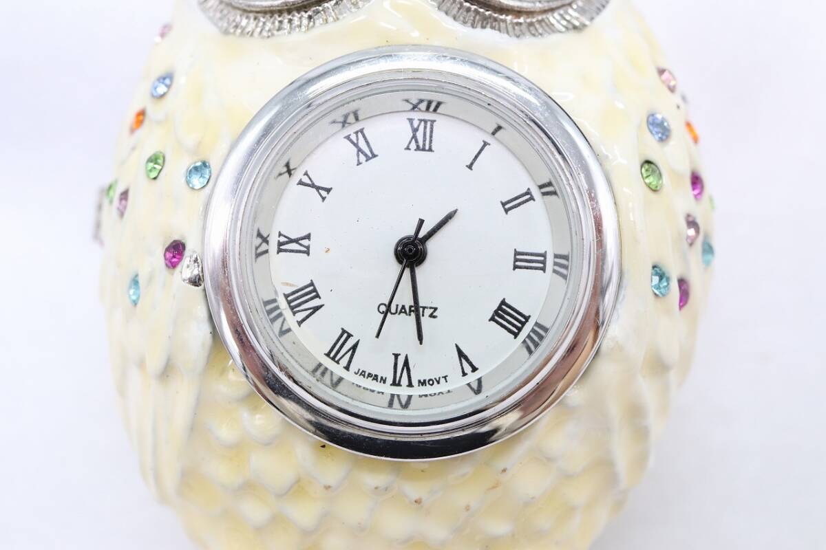 【W265-56】動作品 電池交換済 フクロウ ラインストーン 収納付き ミニ 置時計 インテリア【送料全国一律230円】