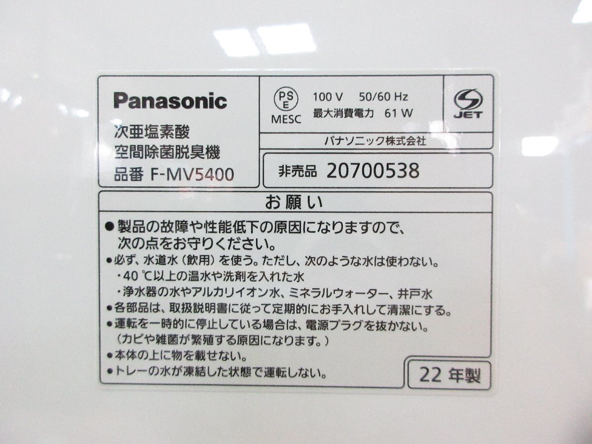 ほぼ未使用 Panasonic パナソニック ジアイーノ 次亜塩素酸 空間除菌脱臭機 ~18畳 加湿機能搭載 F-MV5400 2022年製 展示品