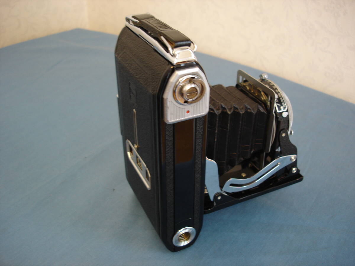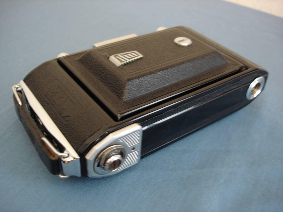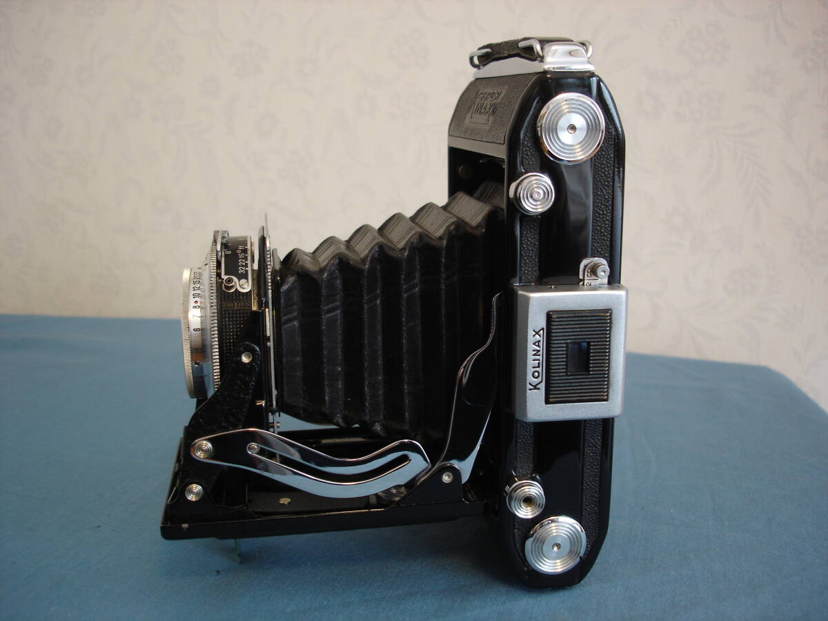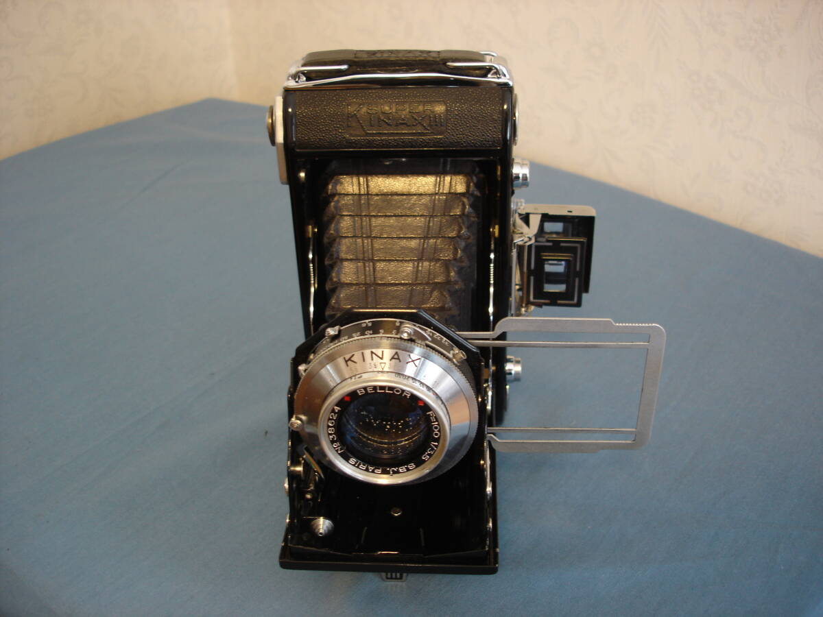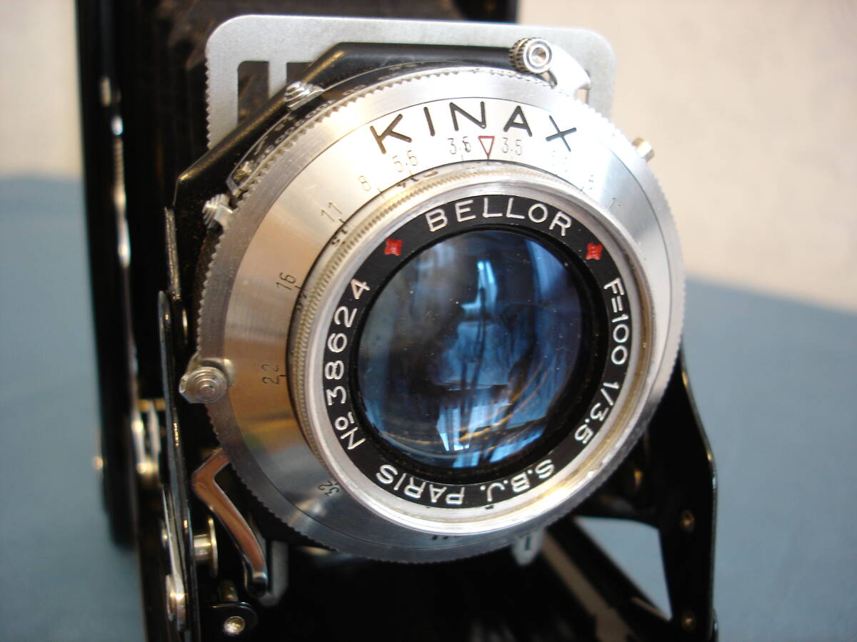 1950年台に作られたフランス製蛇腹カメラ。 620フィルム使いの6X9判カメラです。 620フィルムは120フィルムと同じ幅、長さのフィルムですが、軸の径等が異なるので、撮影に使うには120スプールに巻替える必要があります。