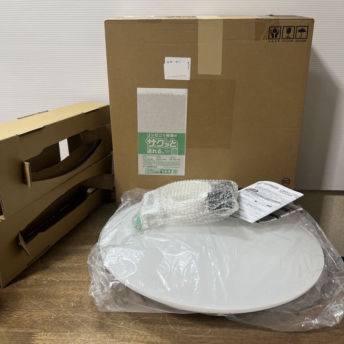 箱に直接伝票を貼り発送します。弱い部分はテープで補強します