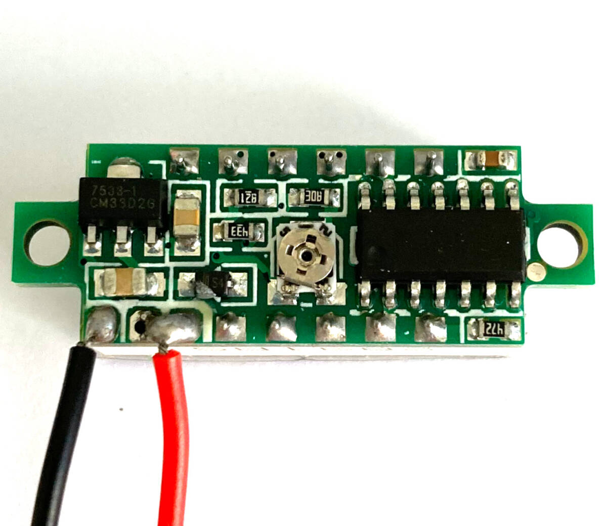 ・製造元提示の測定可能電圧は使用部品のほぼ(動作下限V-耐圧限界V)です。4V以下で表示が暗くなります。また、30V以上の電圧を加えるとほぼ破損するので、余裕をもった15V以下での使用をお勧めします。