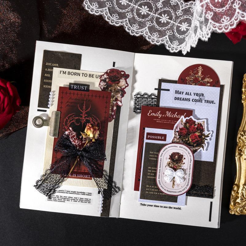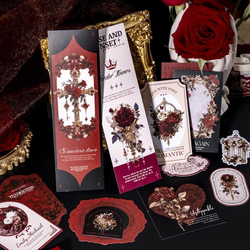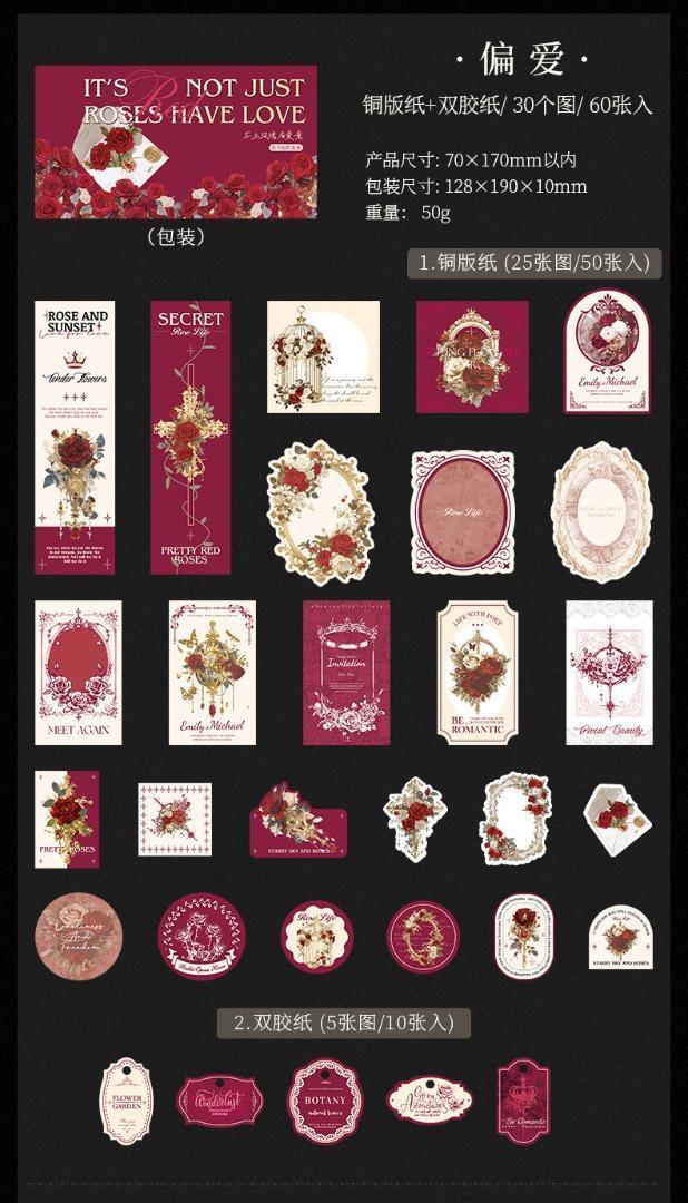 アンティーク風の英字ラベルや装飾タグなどクラシカルな紙モチーフがぎゅっと詰まっています。