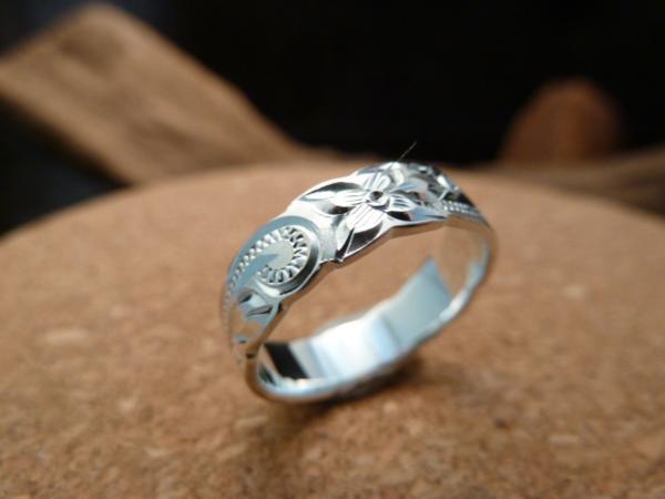 ◆デザイン紹介 本場ハワイから直輸入したハワイアンジュエリーのシルバーリングです。 リング一周にプルメリアと波がモチーフになった彫刻が綺麗にデザインされています。 ギフトに大人気のデザインで、ペアリングやピンキーリングとしてもオススメです。 ◆GIFTラッピング 300円 プレゼント用のラッピングをご希望の方は落札後ご連絡ください。 ◆ネーム彫り 1個 500円 リング、ペンダントへのネーム彫りをご希望の方は落札後ご連絡ください。 1文字づつ手彫りで彫刻しますので書体の指定はできません。(筆記体不可) 大文字、小文字、数字の組み合わせは可能ですがアイテムにより入れられる文字数が変わってきます。 コメント欄にご希望の文字列を明記ください。 例: k to t 21.2.25 (11文字) ペアネックレスの場合はどちらか片方に彫って500円、両方に彫る場合は1000円になります。 なおデザイン上彫刻が不可能の場合もありますのであらかじめご了承下さい。 | ||||||||||||||||||||||||||||||||||||||||||||