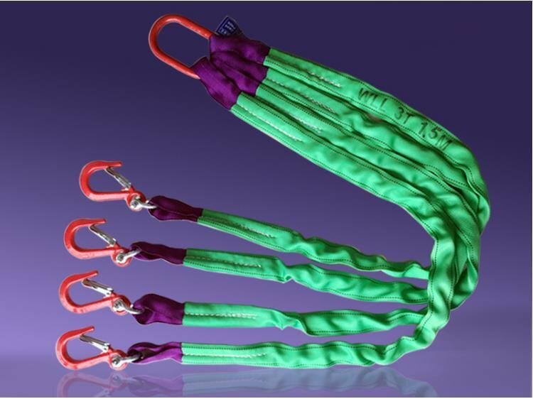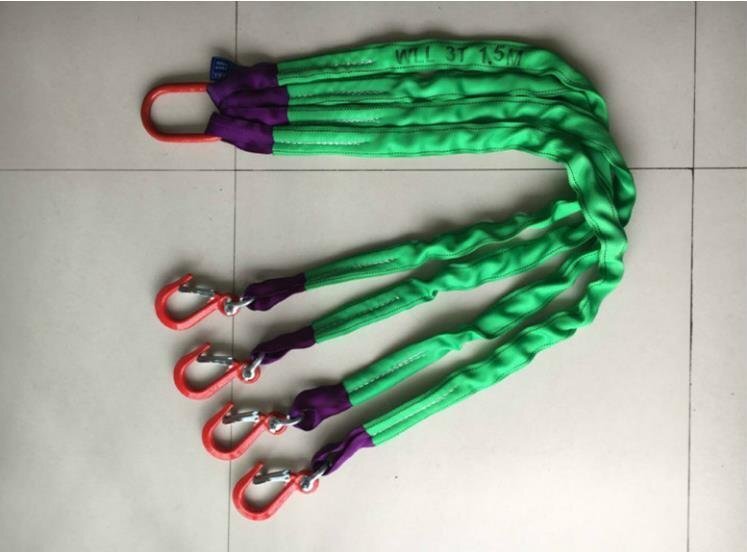 高品質 4本吊り ベルトスリング スリングベルト 作業用 荷吊り 合金鋼製フック付き リング付き ポリエステル製 1.5m 耐荷重3t ベルト幅5cm