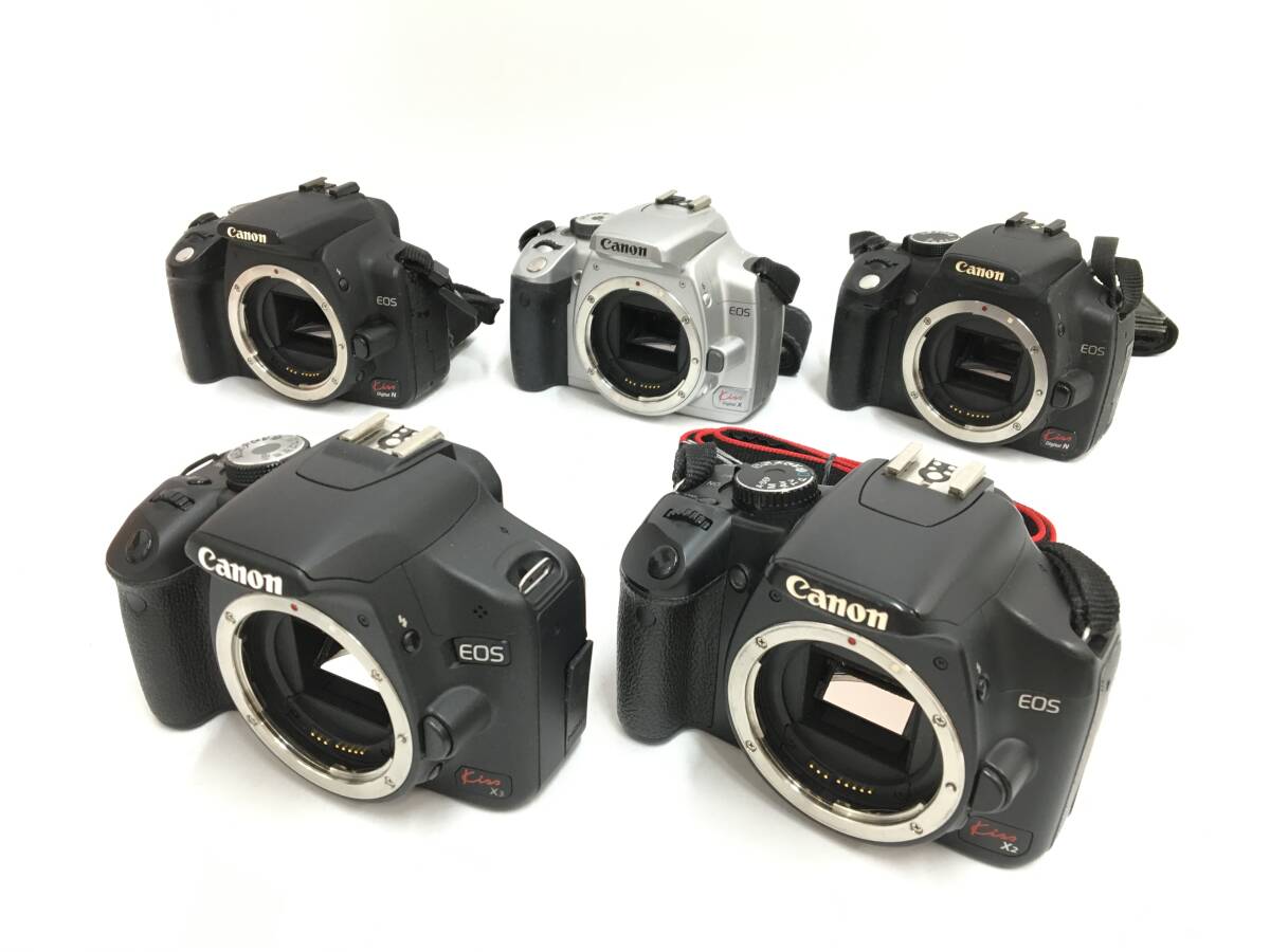 ☆ Canon デジタル一眼カメラ まとめ 3 ☆ EOS Kiss X2 + X3 + Digital X + N ×2 + EF 28-105mm/3.5-4.5 II USM 他 レンズ7本 キャノン