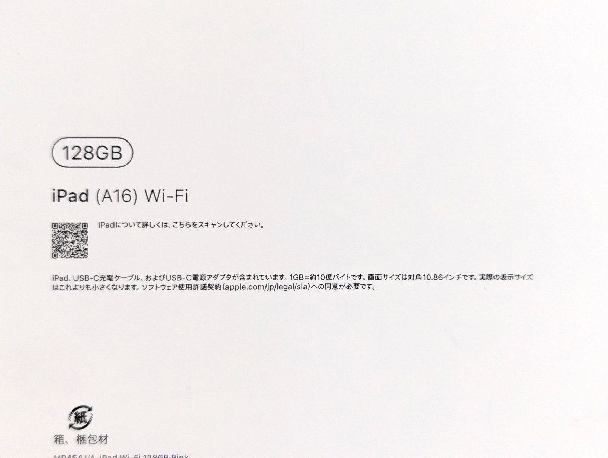 未開封 Apple アップル iPad (A16) 11インチ A16 Wi-Fi 128GB 2025年春モデル MD4E4J/A ピンク《A9821 | |||||