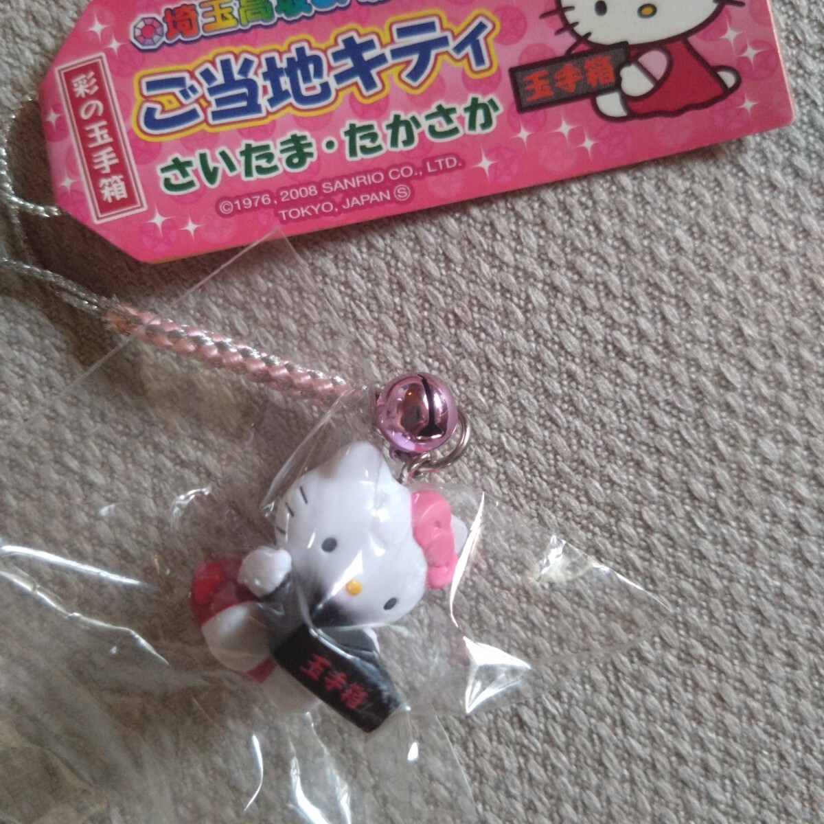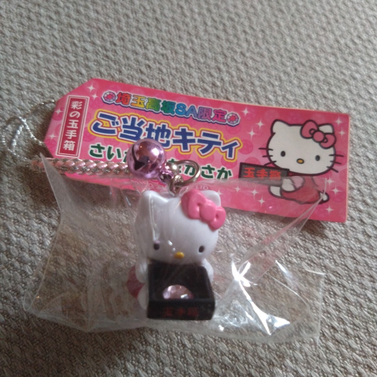 ご当地キティ 2008 埼玉 高坂サービスエリア現地限定 彩の玉手箱 ラインストーン入り箱持ちキティちゃん 根付け ストラップ