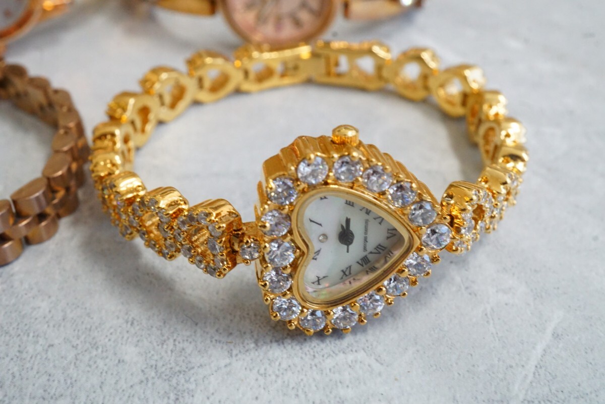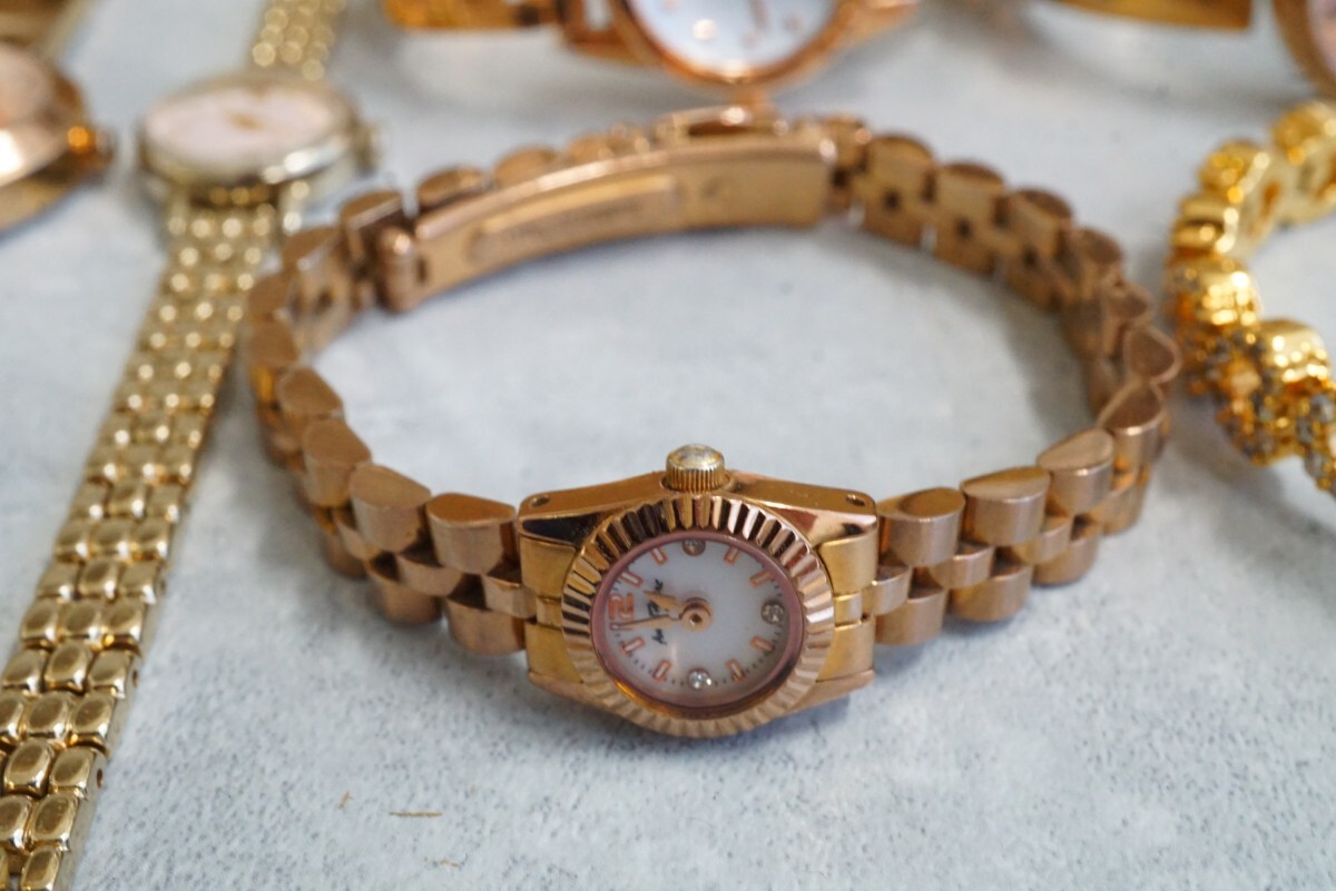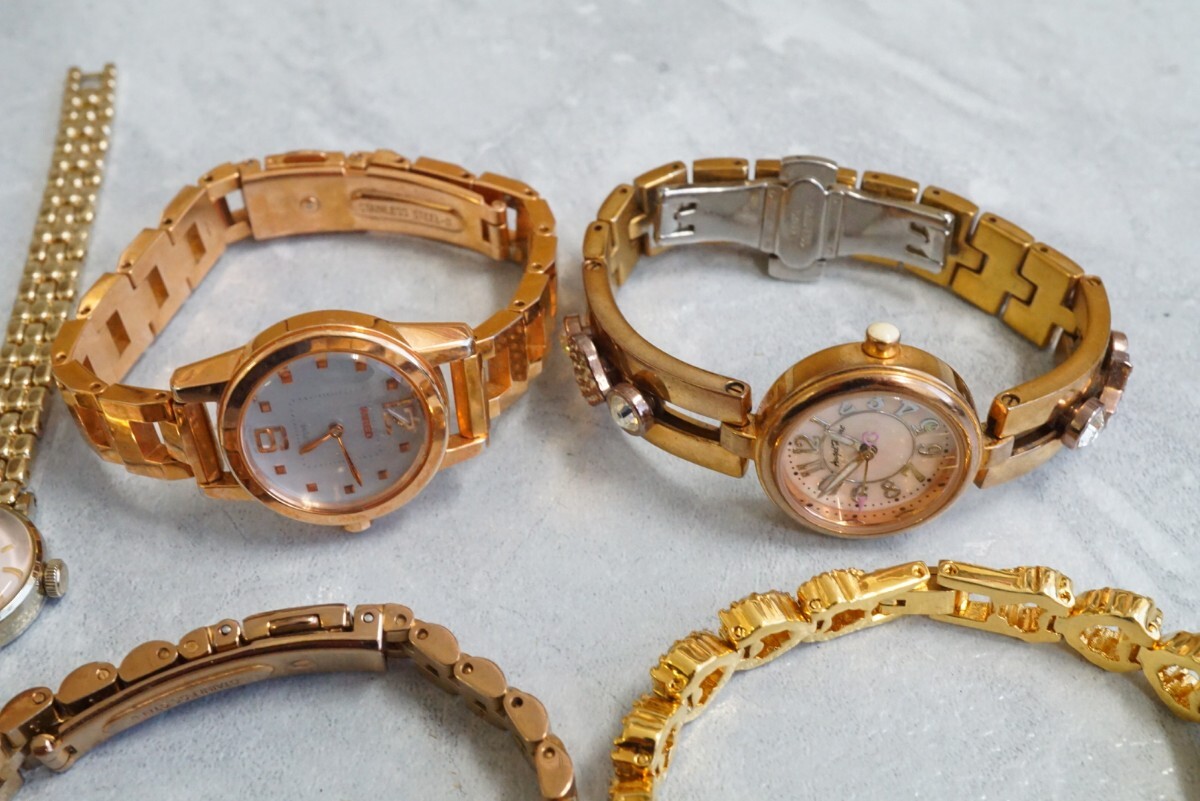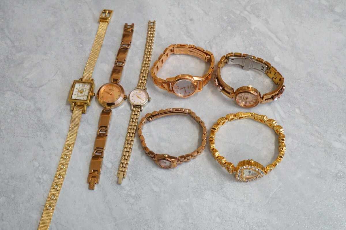 F243 シェル盤 文字盤 ゴールドカラー 腕時計 7点 クォーツ 白蝶貝 アクセサリー レディース 大量 まとめて おまとめ まとめ売り 不動品