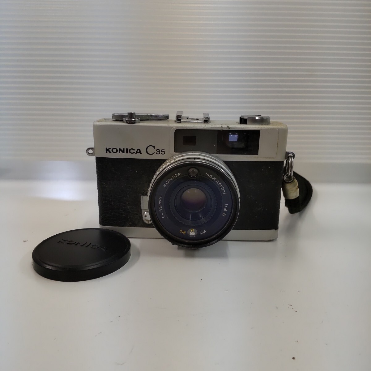 s737 KONICA C35 コニカ フィルムカメラ レンジファインダー ソフトケース付き 動作未確認 ジャンク品