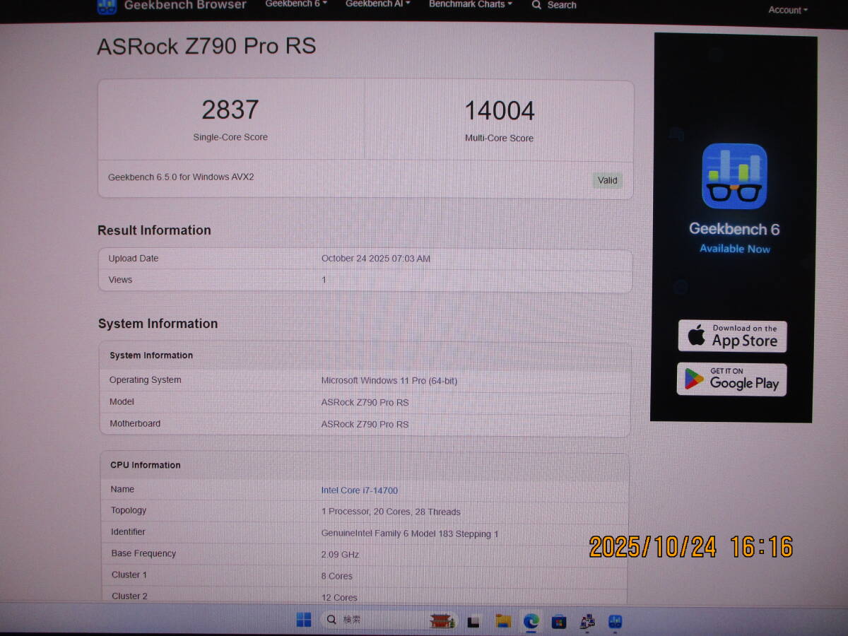 ・型番:Intel Core i7-14700(LGA1700 / 第14世代)