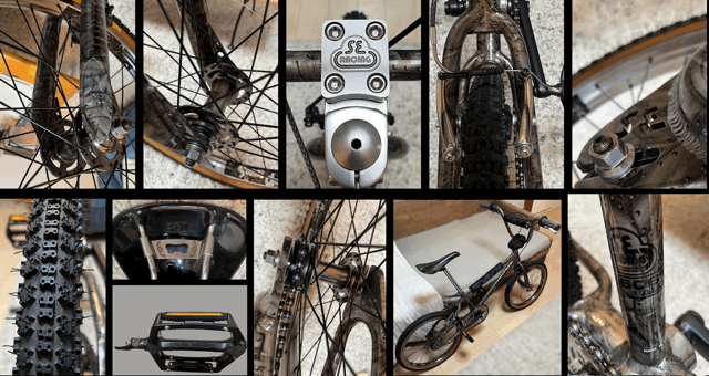 い歴史を誇るSEバイクスだからこそリリースできるRetroシリーズ。その筆頭格にあたるのがPK Ripper Looptail。形状やパイプ、ガセットにこだわり、ループテイルで80年代のビンテージ感を出したアルミフレームはエンドプレートにSEロゴの抜等、凝りに凝った内容となっています。パーツもクロモリのLanding Gearフォーク、クロモリのハンドルバー、SEロゴが彫りでれられたRetro Top Load ステム、復刻させてTioga Comp 3タイヤを装着する他、48スプラインのクランクにシールドベアリングのアメリカンBB、Alex Supra Domeダブルウォールリム、ハイフランジのシールドベアリングハブなど、実際のライディングにも応えられる仕様になっています。現在ではこの価格でのリリースは難しいでしょう。カラーは鉄板を巻いたようなプリントのメタルプレートラップカラーです。フレームやバーに装着するパッドが付属しています。