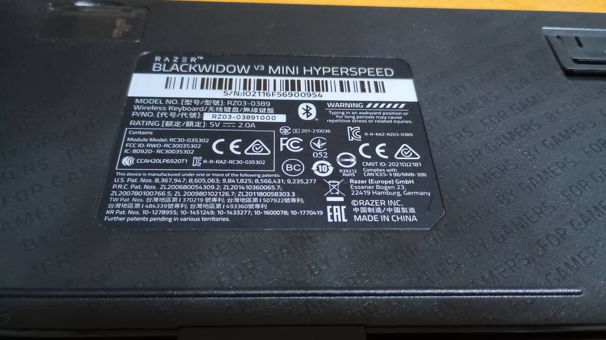 Razer BlackWidow V3 mini Hyperspeed 黄軸になります。