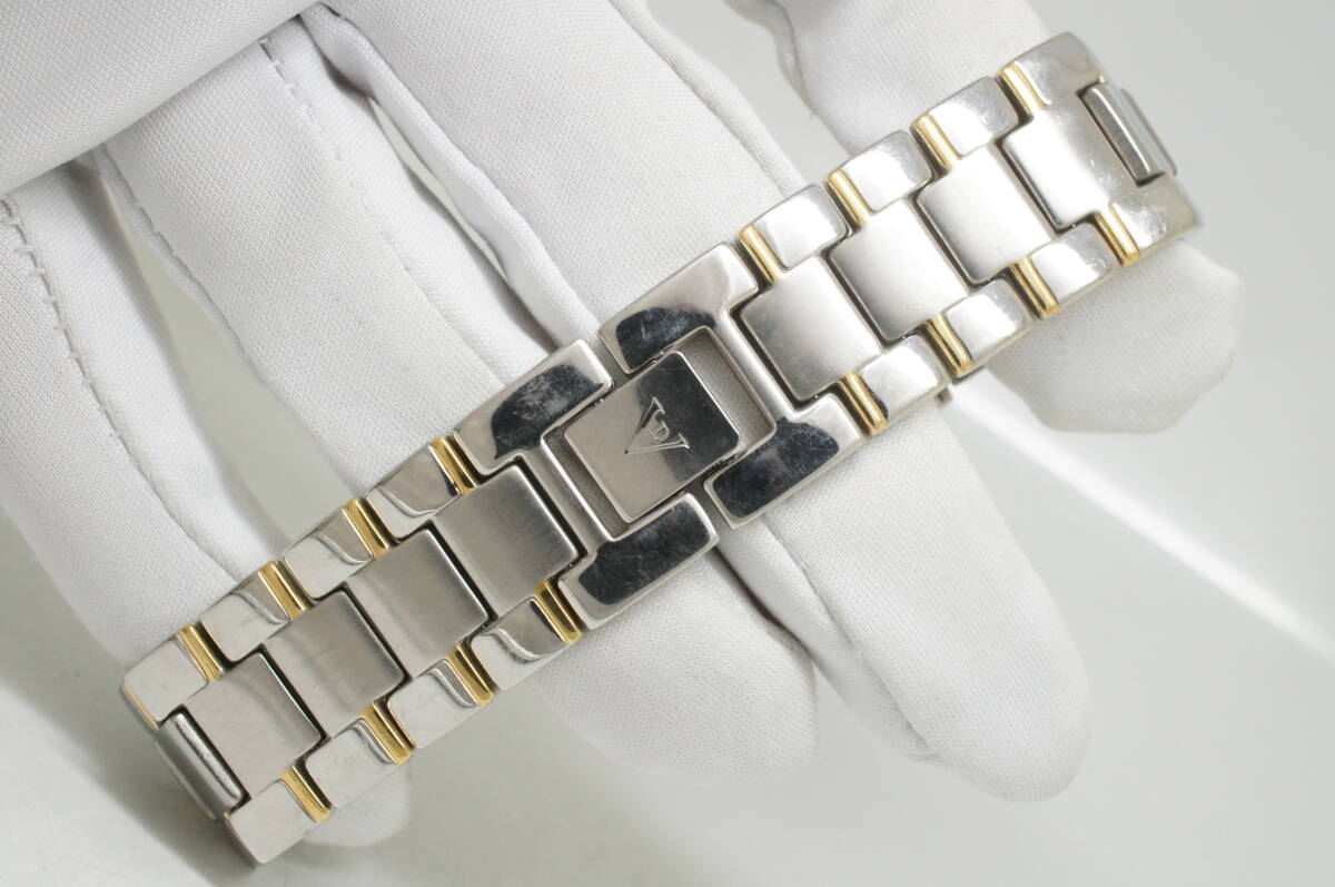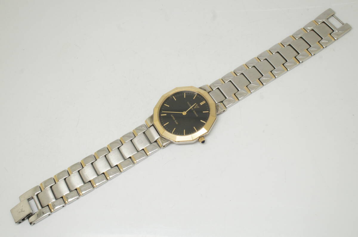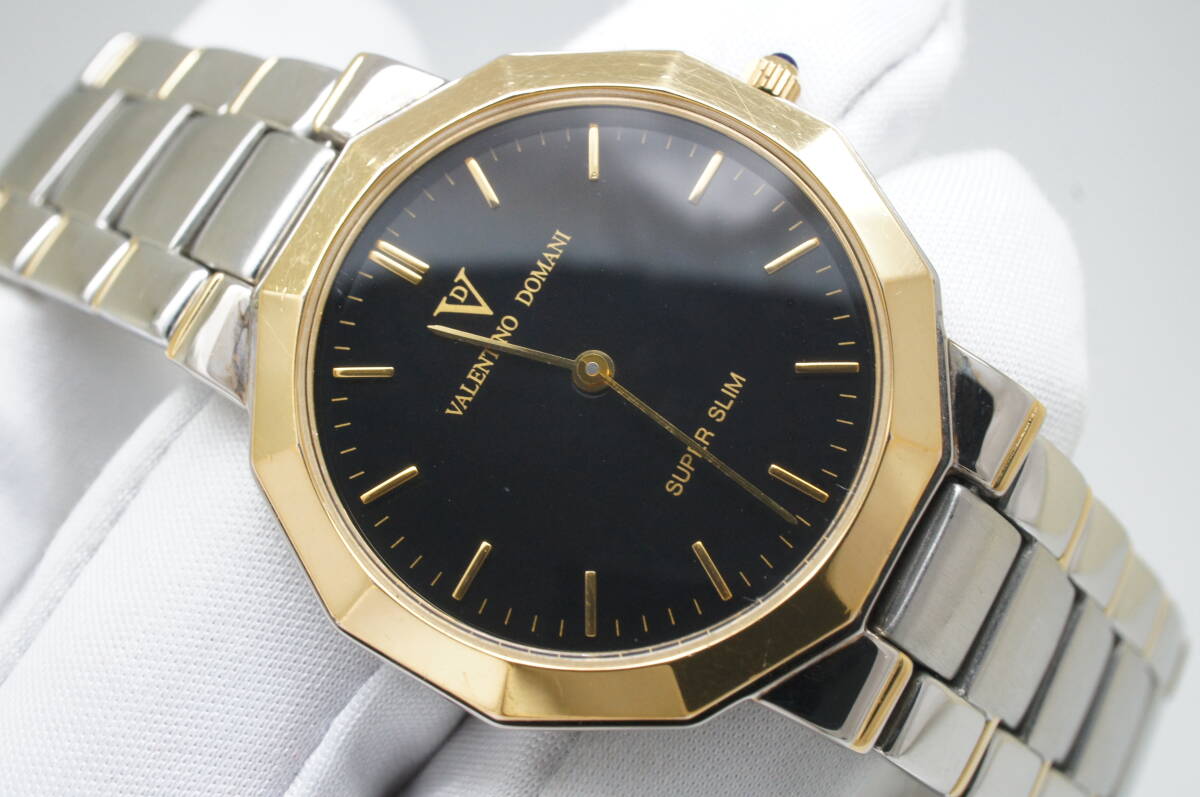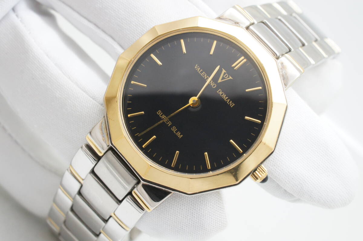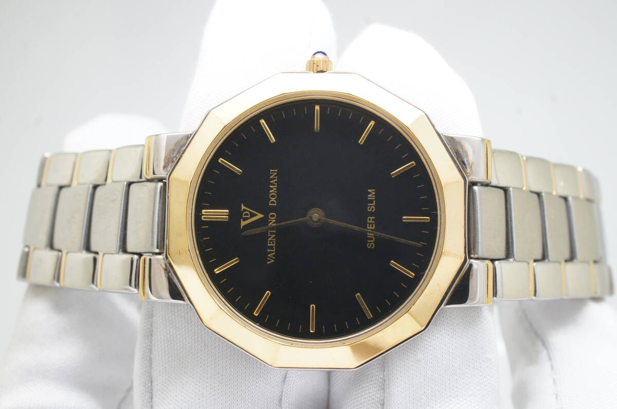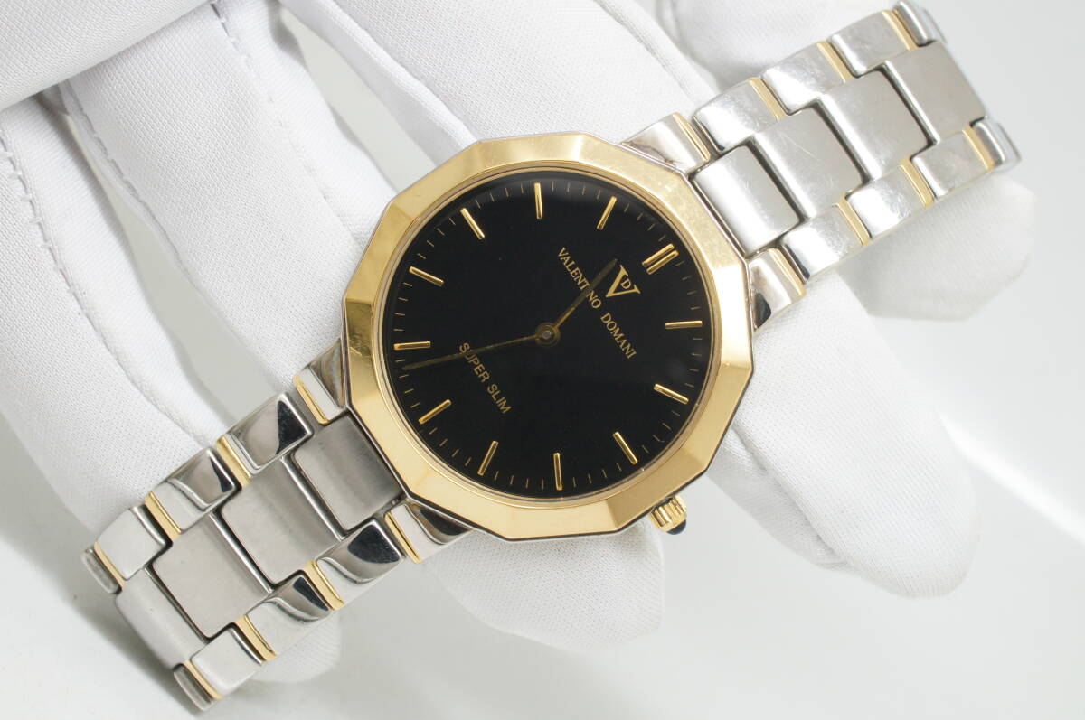 J181●作動良好 VALENTINO DOMANI バレンチノ ドマーニ VD-1017 SUPER SLIM スーパースリム 黒文字盤 メンズ腕時計 コンビ クォーツ
