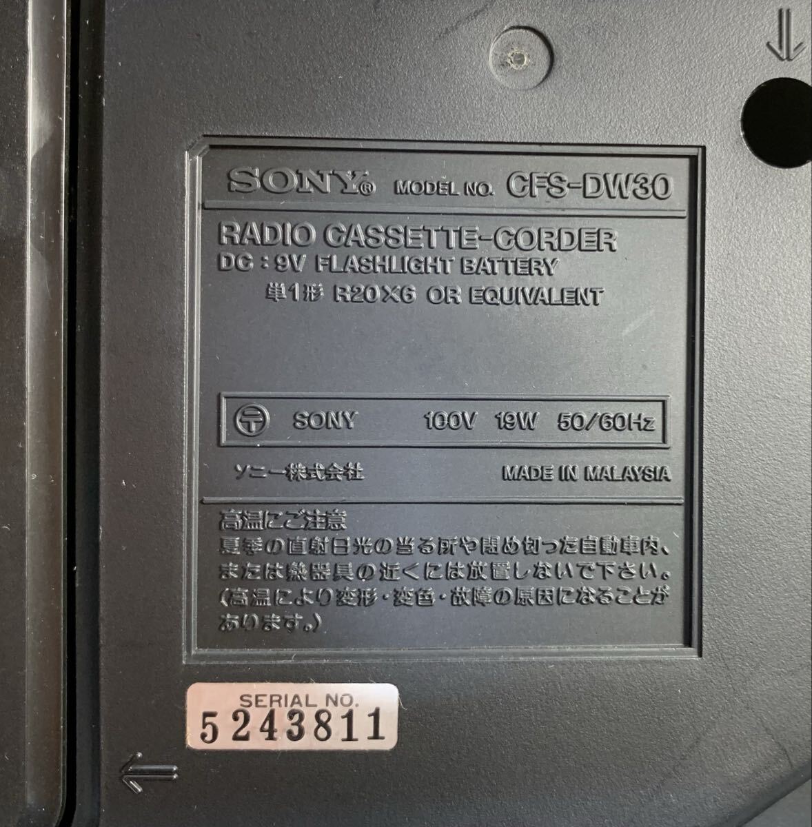 SONY CFS-DW30 Wラジカセ 低重音・グラフィックイコライザー 取扱説明書・箱・FM.AM受信確認 ジャンク扱い