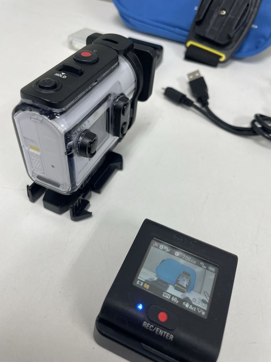 4K解像度のSONY製アクションカメラFDR-X3000、防水ケースとリモコン付き。