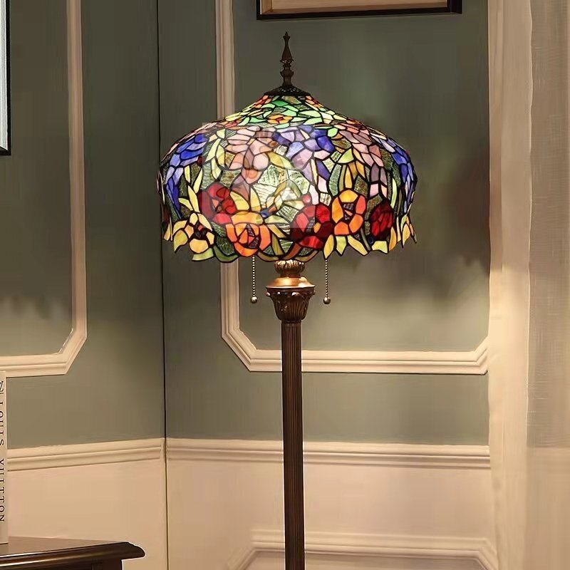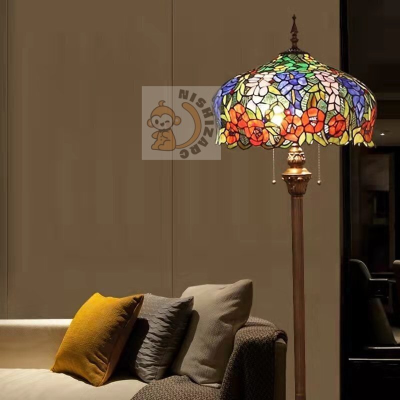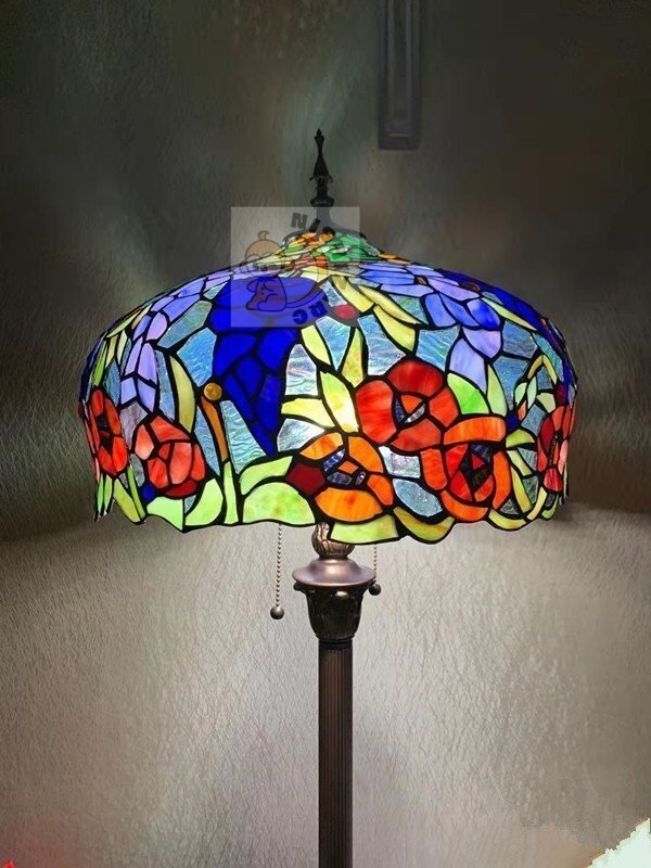 人気美品★ 【ステンドランプ ステンドグラス アンティーク 花柄】レトロな雰囲気がおしゃれ★ ティファニー技法 照明 フロアスタンド