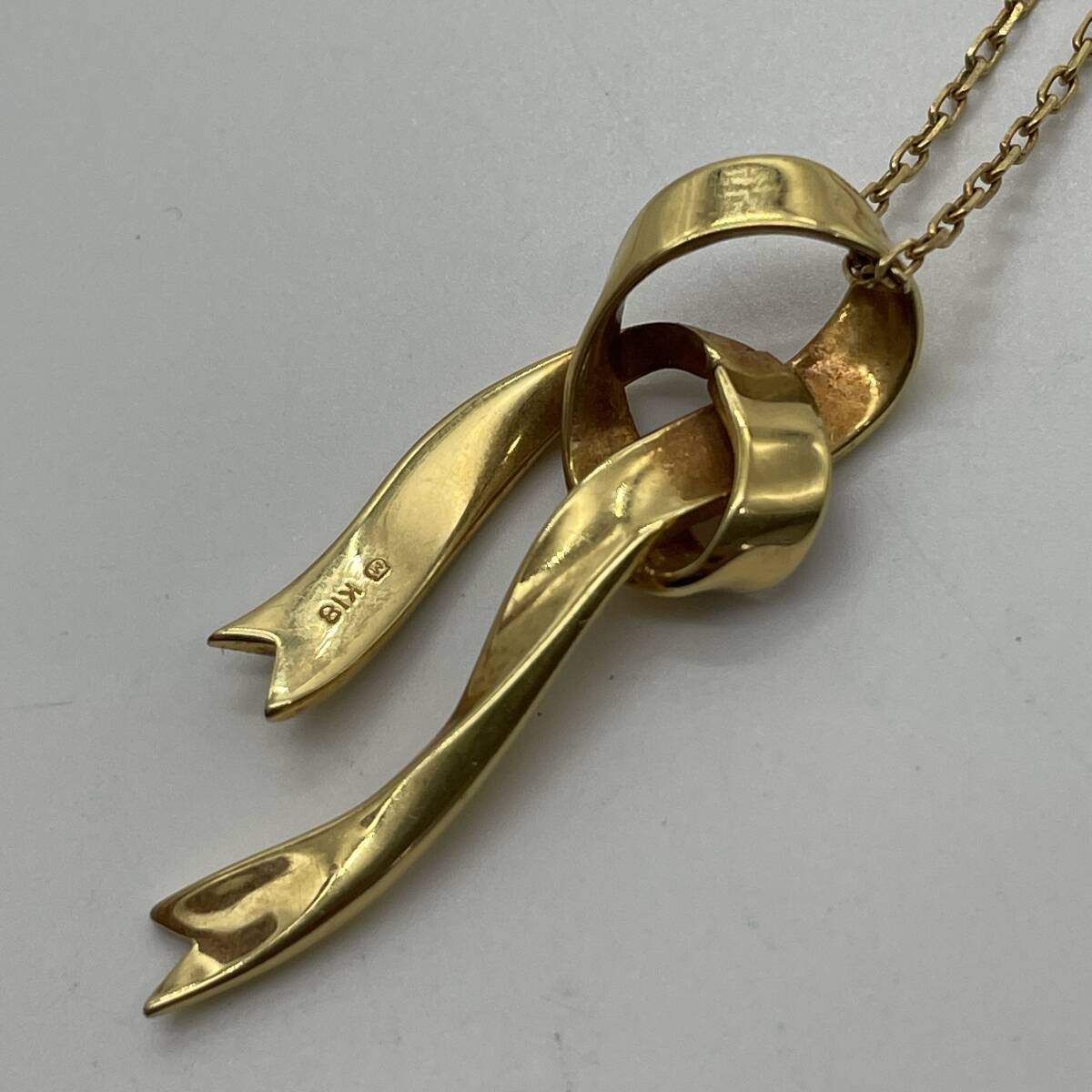 希少【MIKIMOTO ミキモト リボンモチーフネックレス K18YG 750 ゴールド ジュエリー ゴールド 貴金属 レディースアクセサリー 女性】