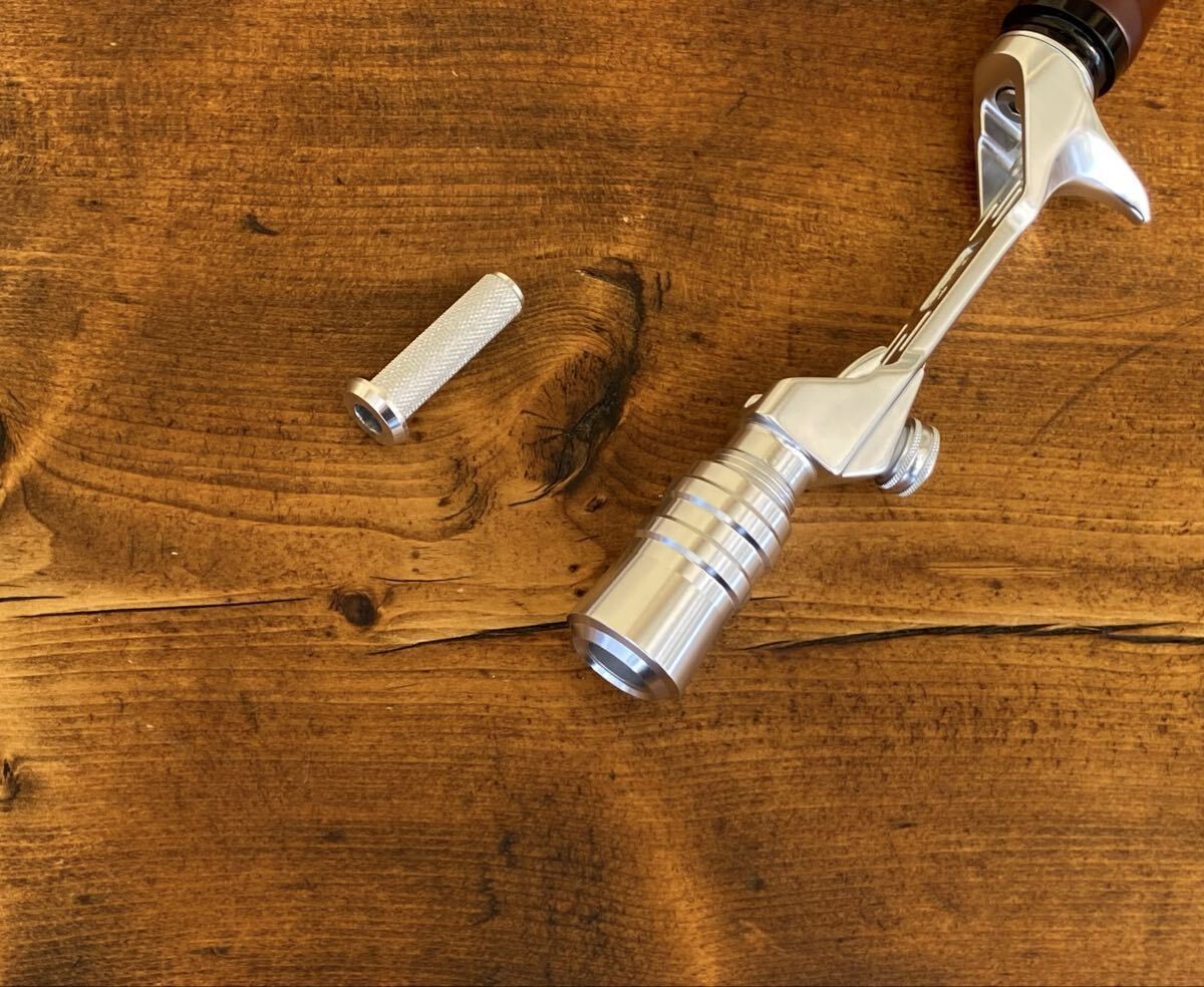 CNC旋盤加工を施したウッドガングリップになります。ロッドビルディングは勿論、手持ちのロッドと組み合わせてみてはいかがでしょうか。グリップ形状は持ちやすく又ウッドグリップなので写真映え間違いなしです!