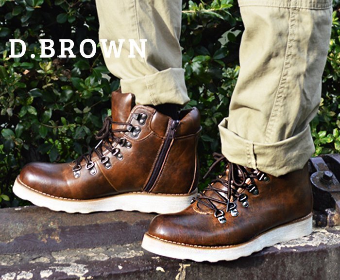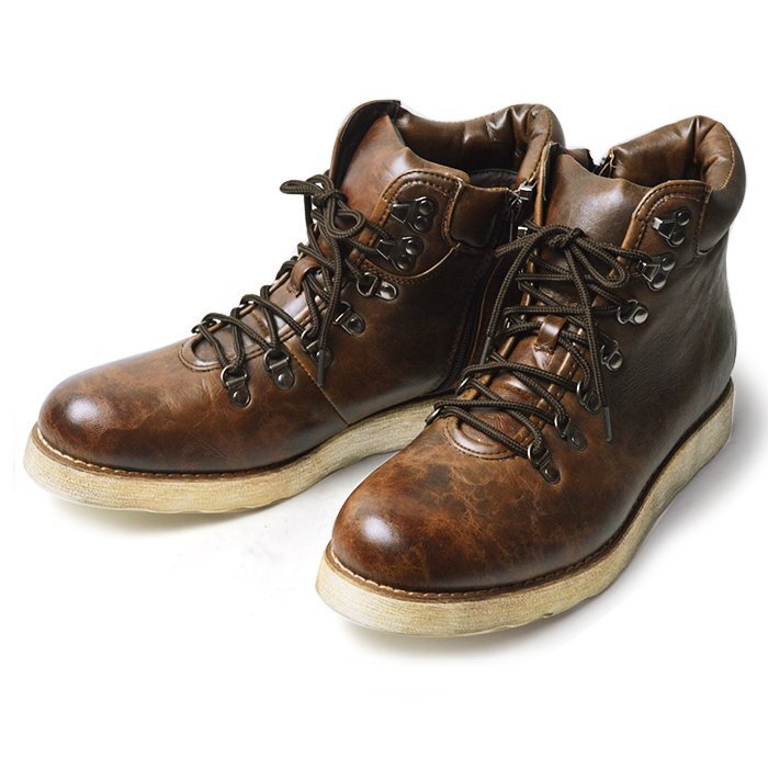 新品■未使用品【26cm】メンズ マウンテンブーツ 替え紐つき 2.5cmUP インソールつき サイドジッパー ワークブーツ ヴィンテージ 男 靴