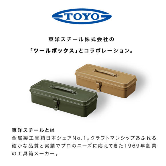 ●クラフトマンシップあふれる確かな品質と実績でプロのニーズに応えてきた、1969年創業の大阪の工具箱メーカー「東洋スチール株式会社」とのコラボレーションのツールボックスです。