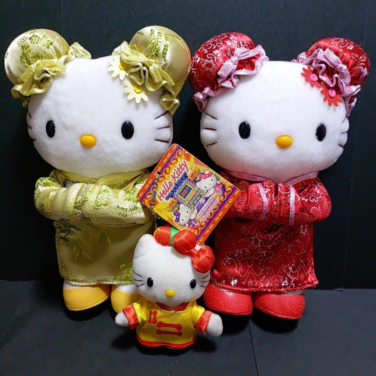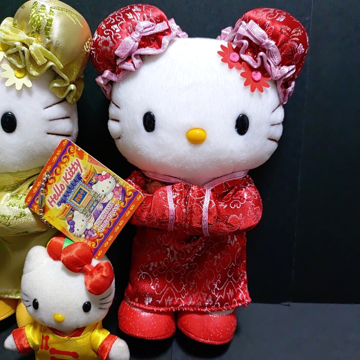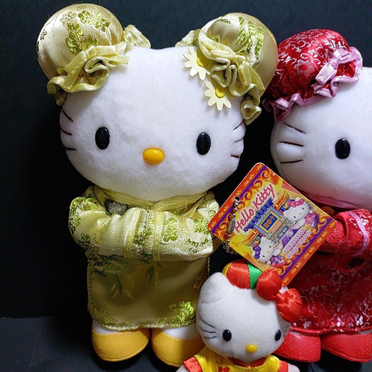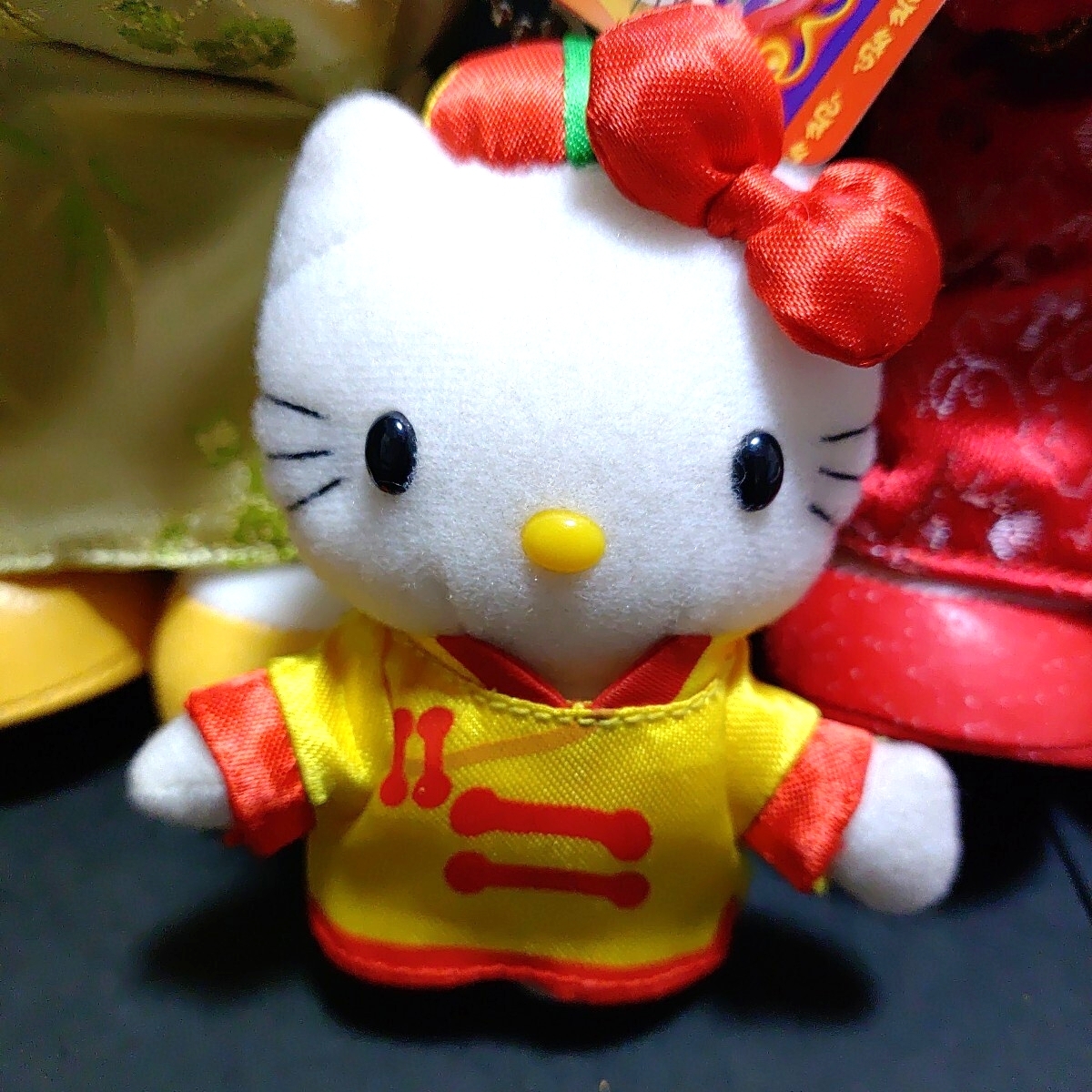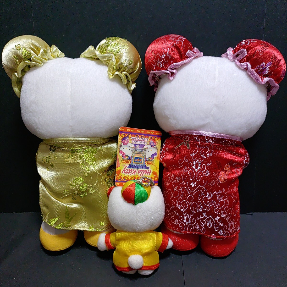 2001年 Sanrio ハローキティ 横浜中華街 チャイナ服ぬいぐるみ 2体 + ボールチェーンキーホルダー マスコット チャイナ服