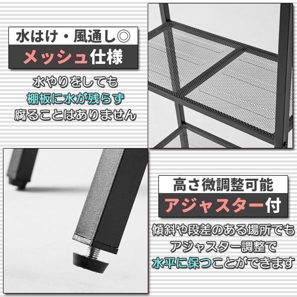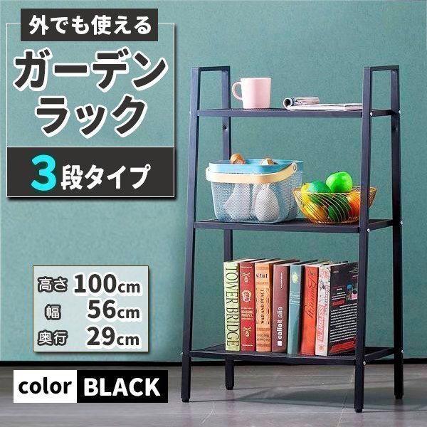 ガーデンラック プランタースタンド 3段 バルコニーラック プランターラック フラワースタンド スチールラック ブラック