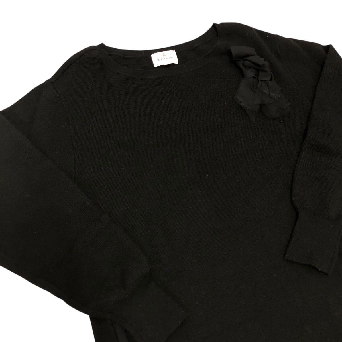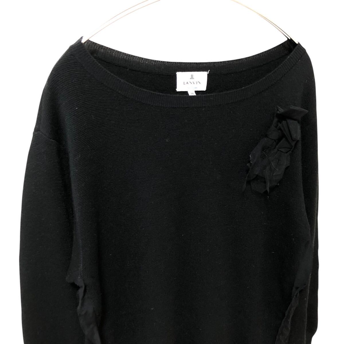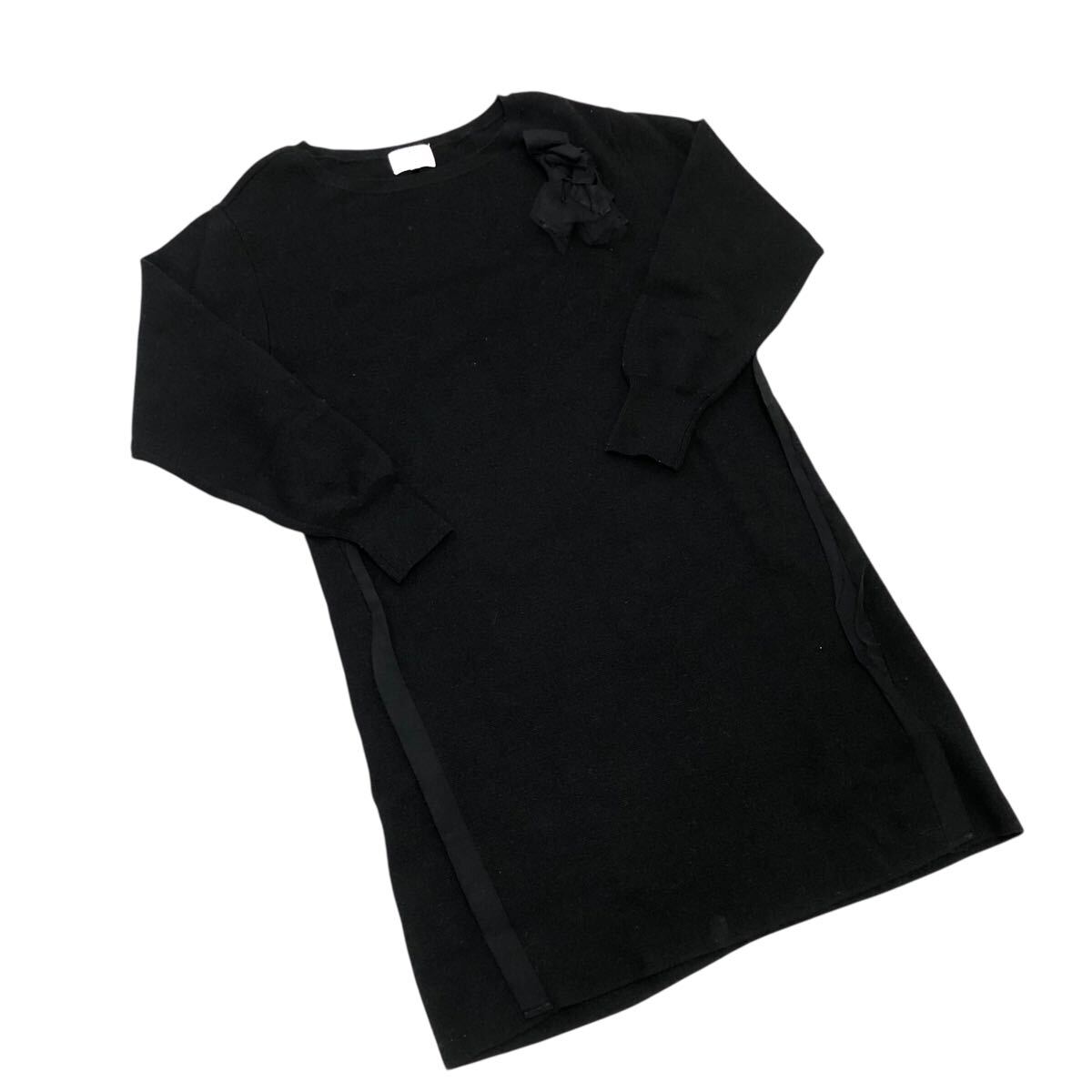 11NG008-83 LANVIN en blue ランバン オン ブルー ワンピース ニット トップス フリル ブローチ レディース 38 ブラック