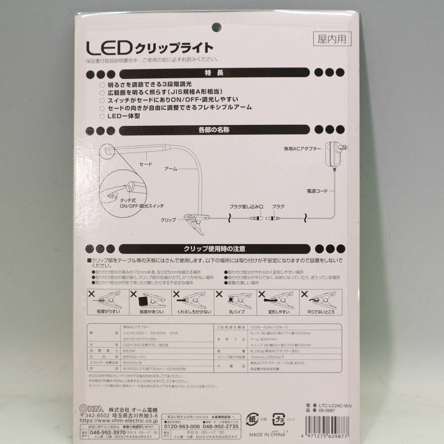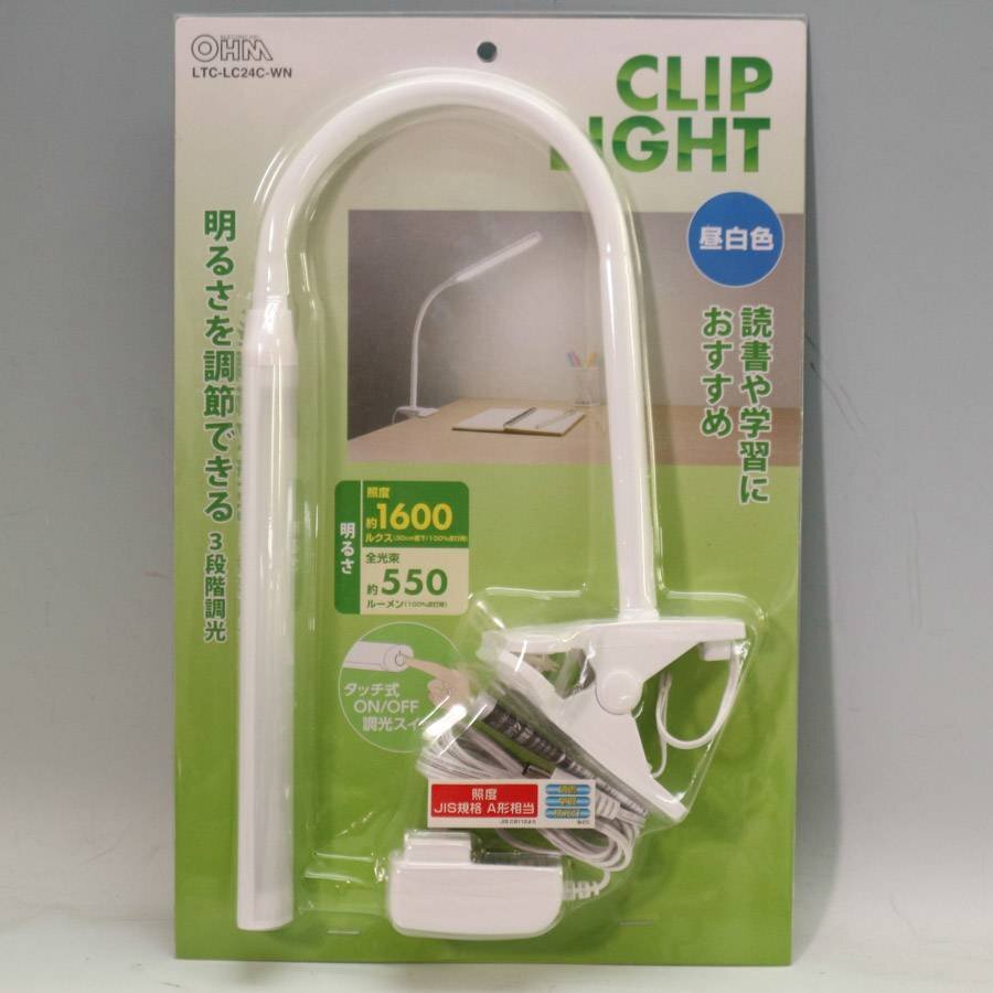 未使用品 オーム電機 LEDクリップライト LTC-LC24C-WN 3段階調光 昼白色 読書 学習 デスクランプ 卓上照明☆265y03