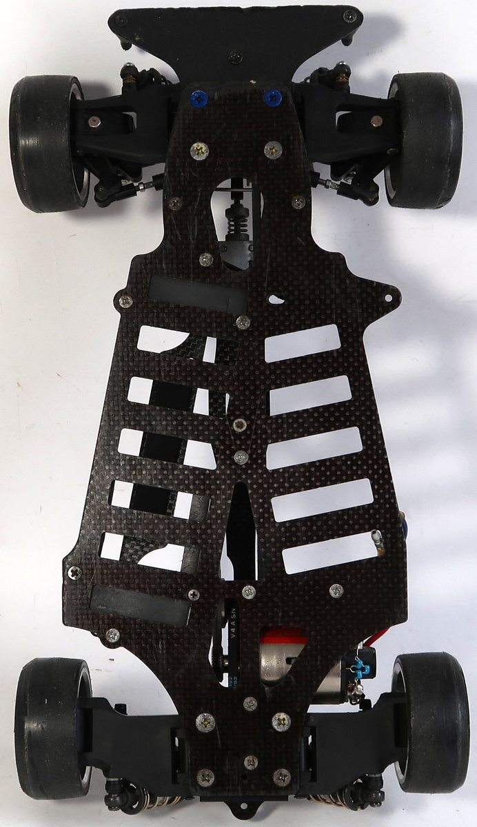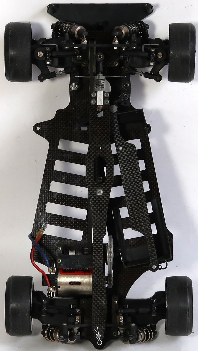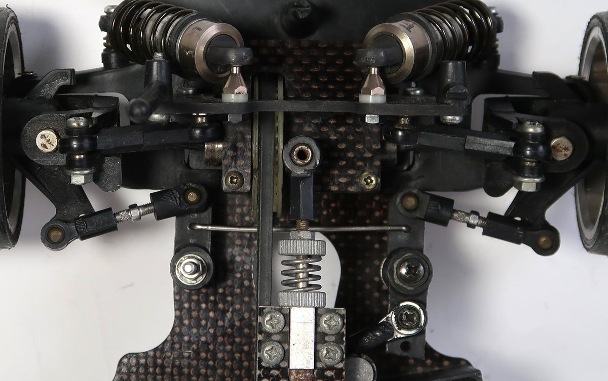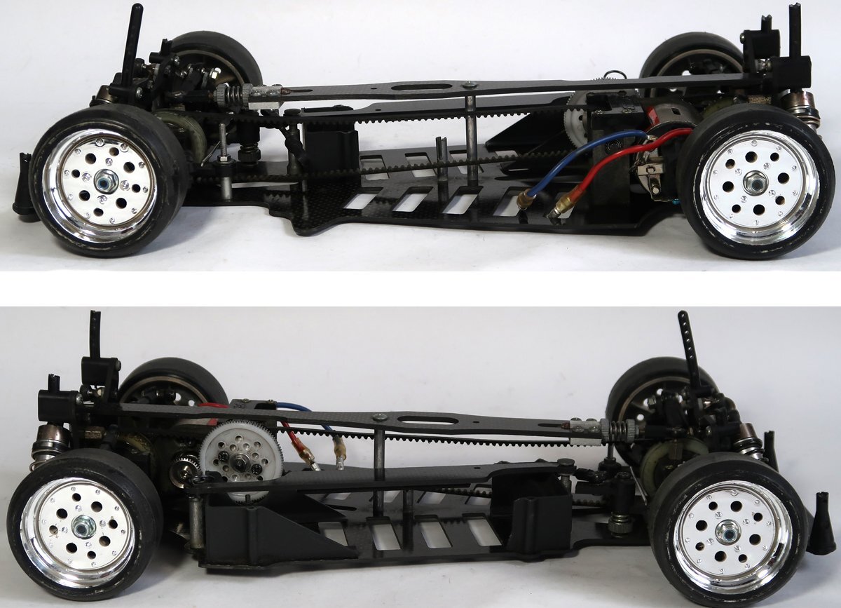 出品は画像の物が全てです。他に必要なものがあればご自分でご用意ください。ラジコンカーは使用品ですし古い物ですので所々に擦れや汚れがあります。擦り傷やサビもあります。ドリフトタイヤがつけられているので、おそらくドリフト仕様だと思われます。そのためかデフギアは逆回転させることは可能ですが、フロント、リアともかなり固められています。ダンパーはオイルは入っていない可能性があります。駆動系はベルトを引っ張ってみましたが、問題なく回転はしております。サスも動かしてみましたが、動作はしております。ボディ用のポールが折れてなくなっています。ひどいダメージはないと思われます。完璧に走行させる為にはメンテナンスが必要ですしプロポやバッテリー等の機器は必要です。簡単なクリーニングをしただけですので、一切の走行などの動作テストはしておりません。分かる事は以上です。お取引後は一切のサポートはしておりませんので問題があればご自分でご対処ください。お取り引き後に説明以外の不足品や説明以外の破損や故障が有ったとしても返品は出来ませんしクレームもお受けできません。問題があれば全てご自分でご対処ください。