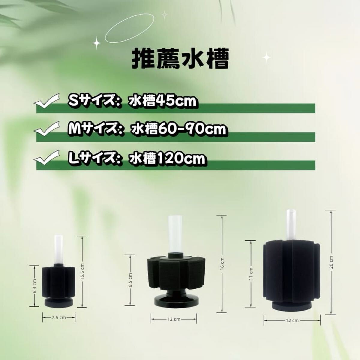 スポンジフィルターにより二重濾過(物理ろ過と生物濾過)、更にバクテリアに繁殖促進させ生物機能付きです。飼育容器をきれいで水質浄化抜群効果があります。