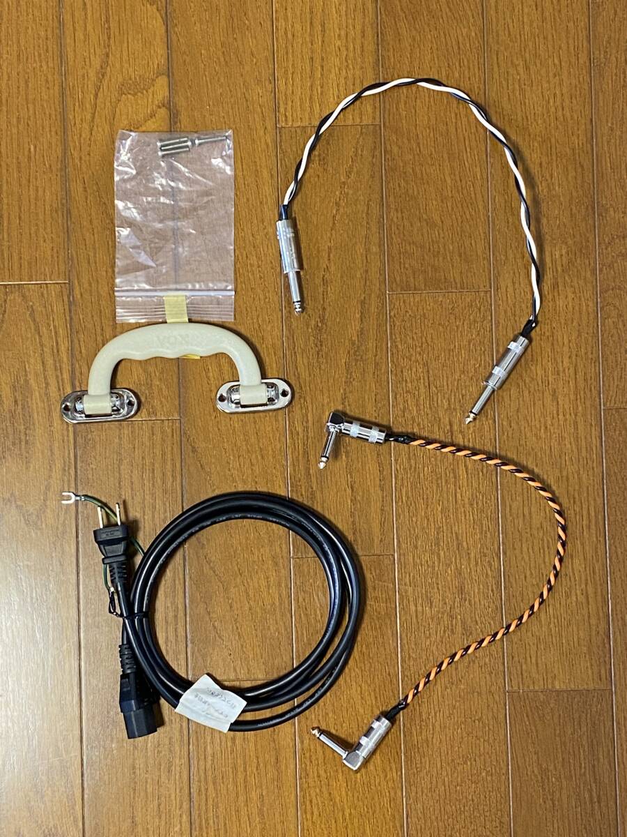 付属品は、電源コード、スピーカーケーブル2本、純正ハンドルになります。