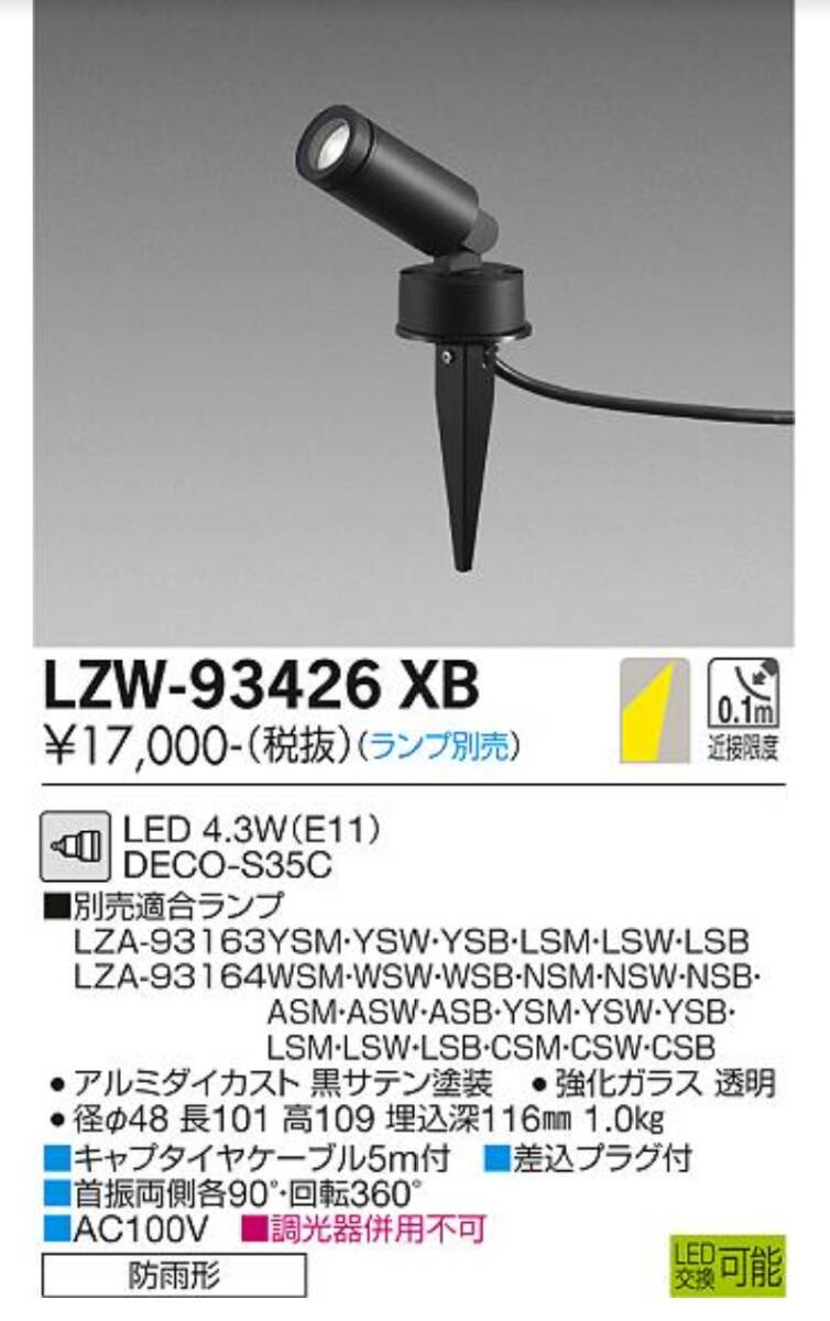 DAIKO(大光電機)屋外スポットライト/アウトドアスポット(ランプ別売) LZW-93426XB 3個セット