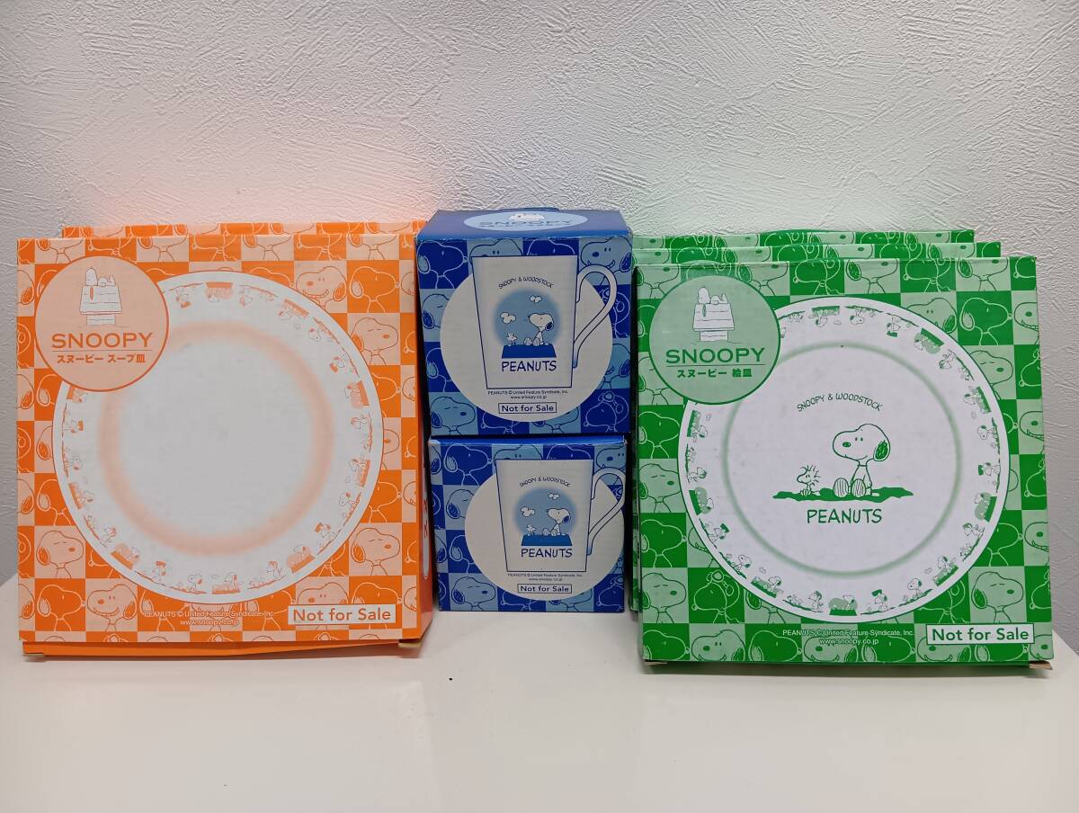 | 14345 スヌーピー 食器 7箱 Not for Sale 皿 スープ 絵皿 ディッシュ プレート マグカップ コップ 陶器 非売品 現状品 | ||