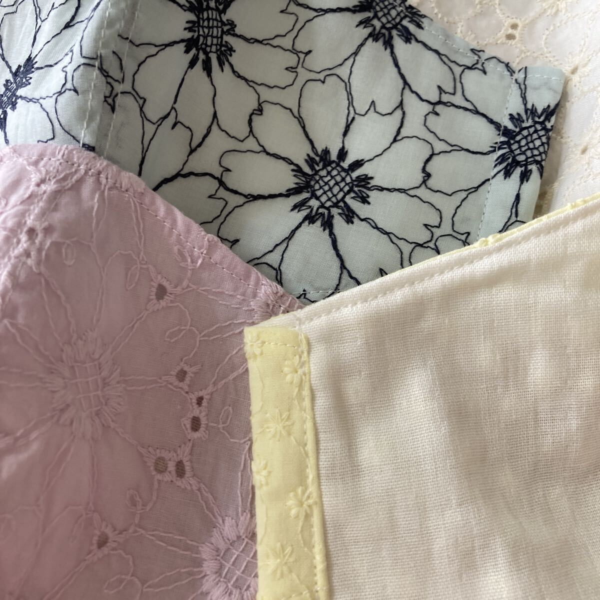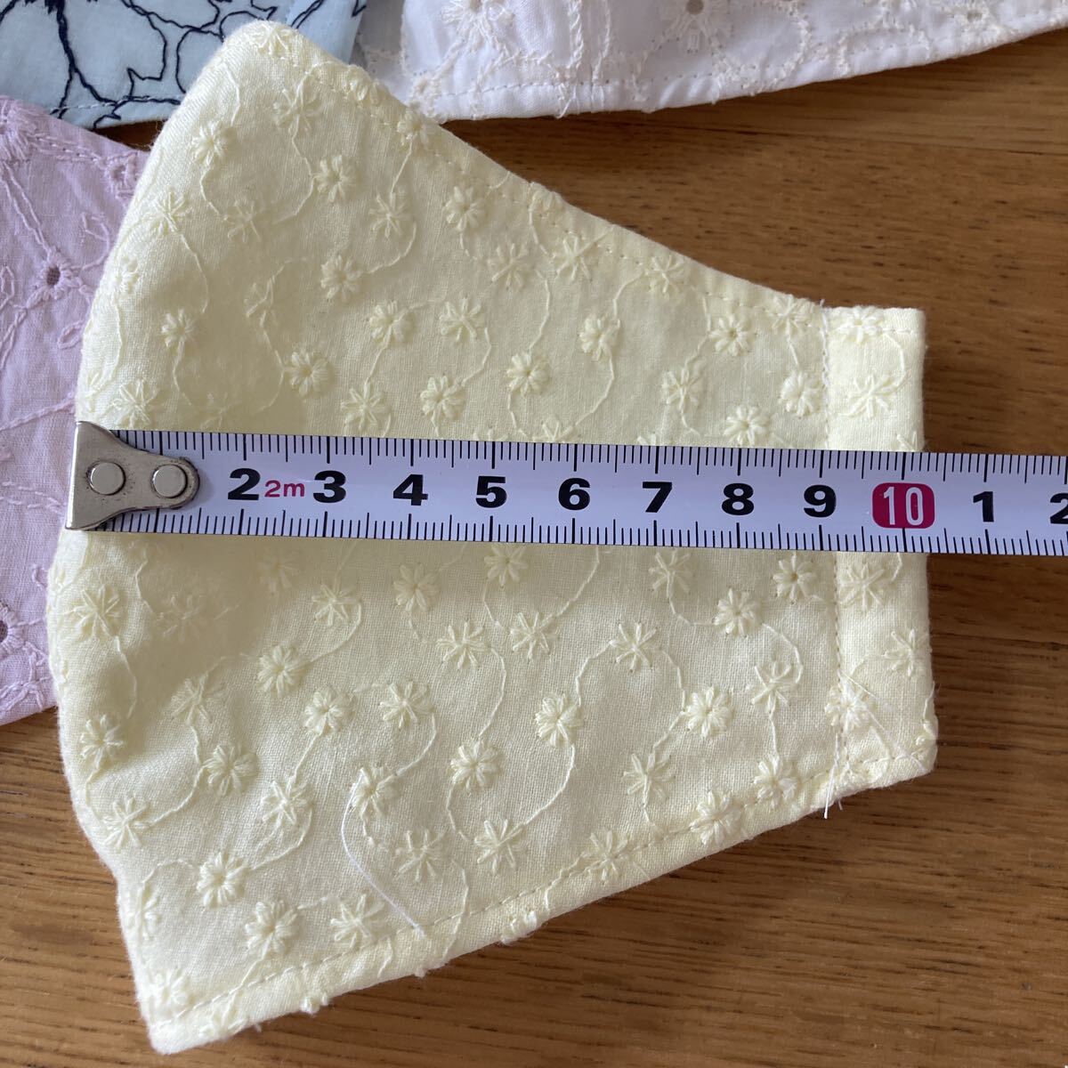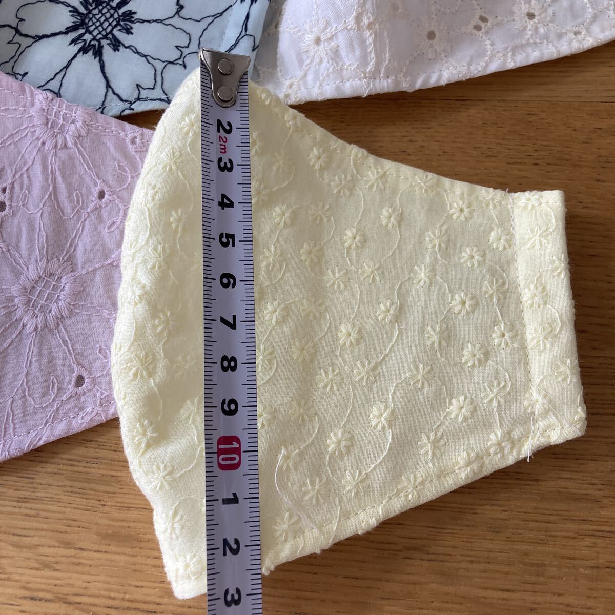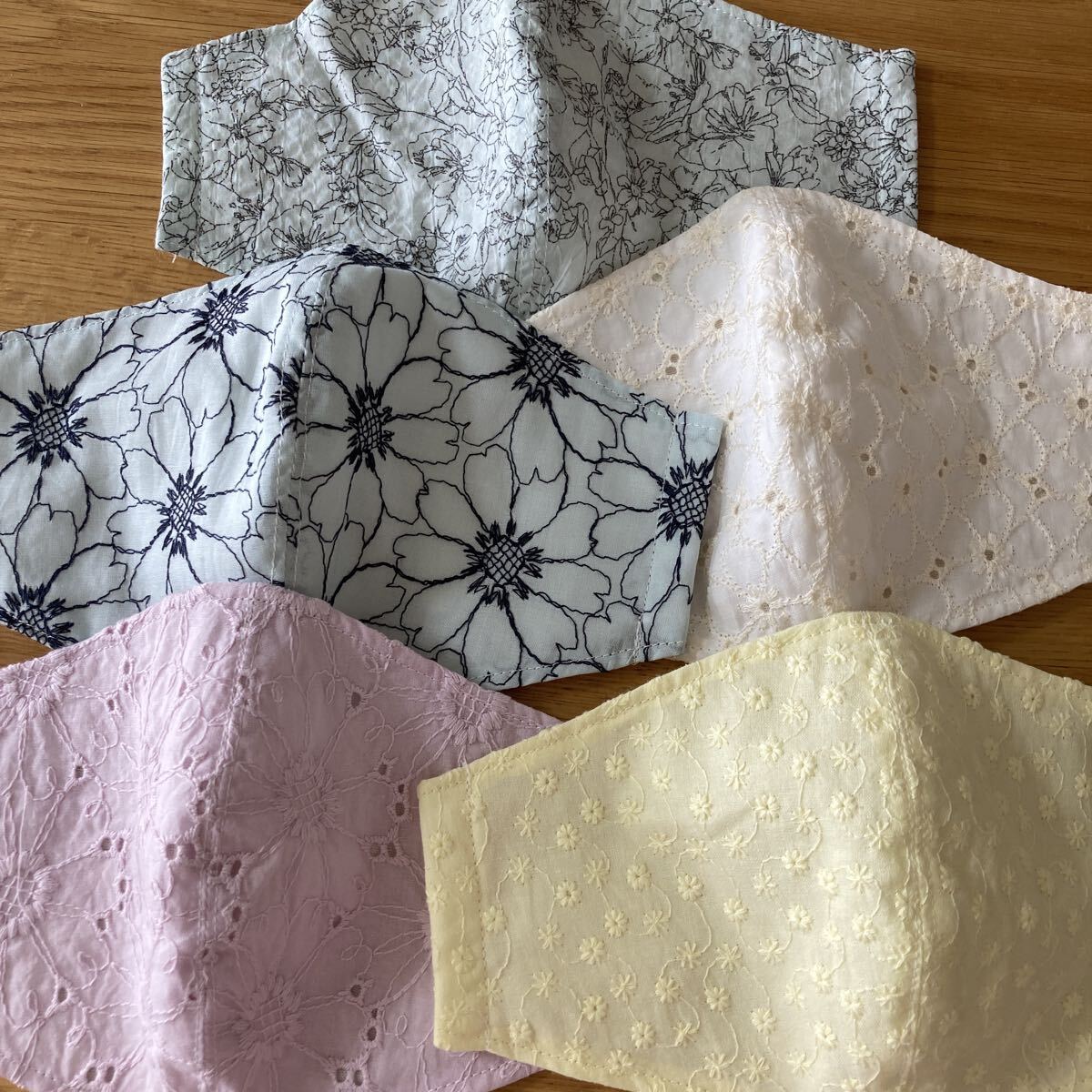 ハンドメイドです。素人作成ですので多少の左右ゆがみ大きさの誤差などあり。気になさる方の入札はお控えください。サイズはご自身でお確かめください。裏はダブルガーゼ です。ゴムはおつけします。