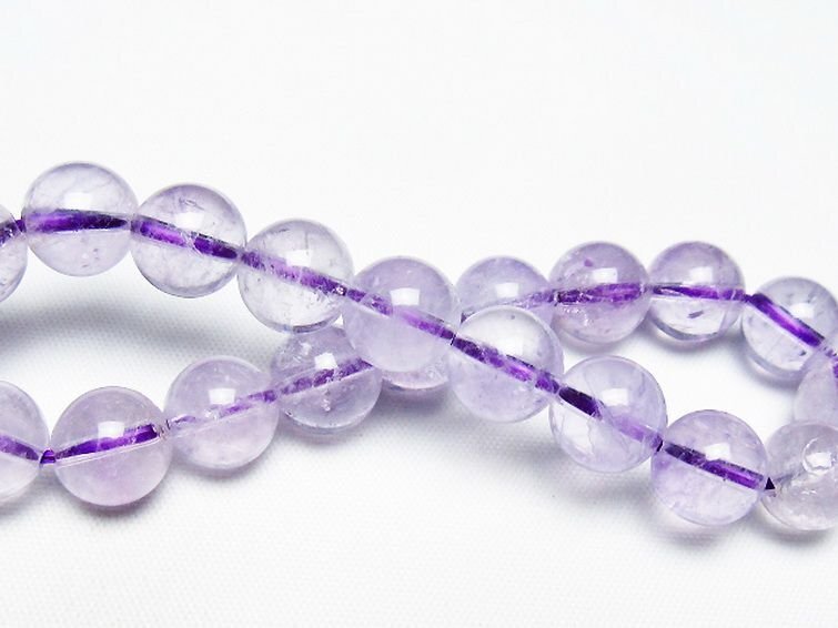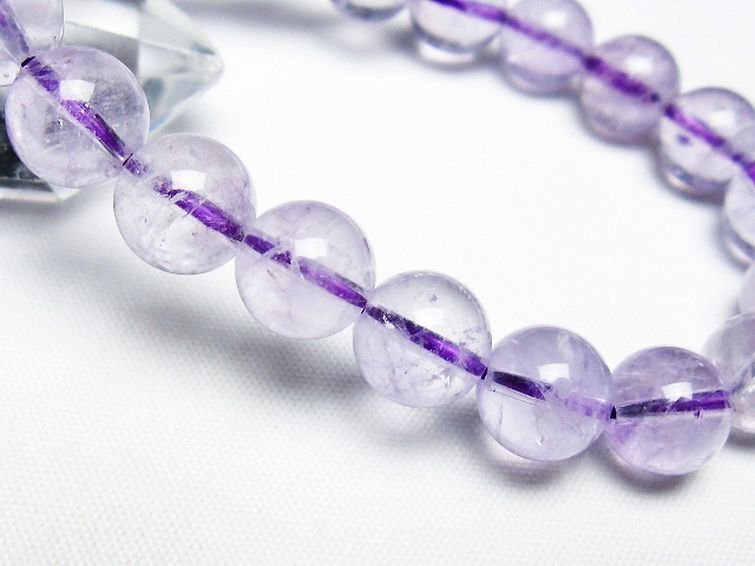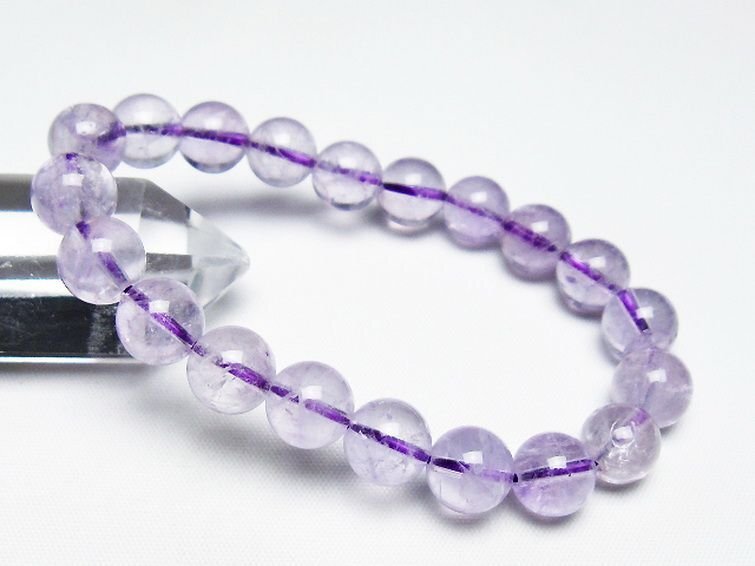 | ■商品名: アメジストブレスレット ■商品ID: T403-17652 ■商品重量:約 27g ■商品サイズ:内周約:160mm(±5mm)粒直径約:10mm(±0.5mm) 【アメジストクォーツ(紫水晶)】 アメジストは鉄分によって紫色に発色した水晶の一種です。 名称はギリシャ語で酒の意味のmethyと否定辞のa、つまり「酒に酔わない」「この石でできた盃で酒を飲めば悪酔いしない」に由来するとされています。 「酒に酔わない」と言われる通り、アメジストは体調面への作用が大きく、血液を浄化して解毒、解熱作用を高め皮膚病の治療や不眠を解消するのにも用いられたと言われています。 アメジストは真実の愛を導く愛の守護石とも呼ばれ恋愛運UPの石としても広く知られています。 理想的な出会いをもたらす効果や持ち主に美や調和を与え、セクシーな魅力を引き出すとのことですので恋愛成就のお守りとしても最適といえるでしょう。 また、くよくよしたり傷ついたりしている時には癒し、目前の困難を乗り越えていけるように精神を強くするヒーリング効果も期待できます。 不眠にも効果があるとされていますので、ストレスを抱えている人にもおすすめの石です。 ⇒ アメジストをもっと詳しく ◆ワンポイント情報 アメジストは産地によって結晶や色味の傾向が変わります。 例えばブラジル産は結晶が大きめだが色味は少し薄め、ウルグアイ産は結晶は小さく細かいが色味は濃紫の傾向、メキシコ産は細長い結晶でライラックの様な明るく透明感のある紫など特徴が異なります。 産地による好みが人によって分かれるのもアメジストならではと言えるでしょう。 |