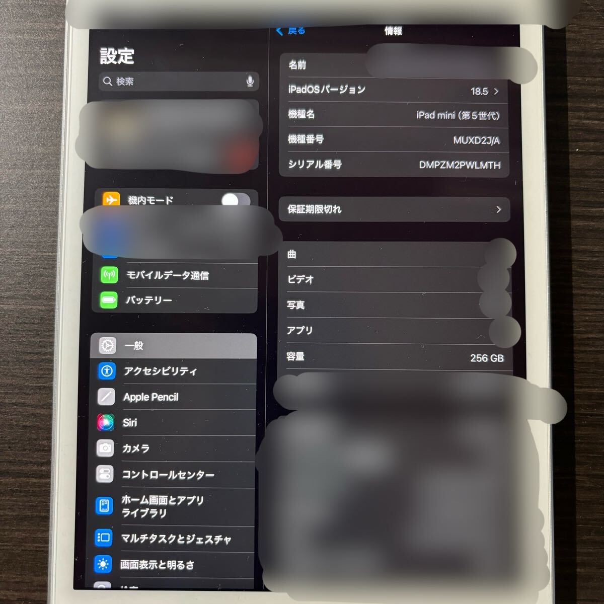 iPad mini 7.9インチ 第5世代 Wi-Fi+Cellular 256GB シルバー 2019年春モデル MUXD2J/A SIMフリー バッテリー最大容量91%