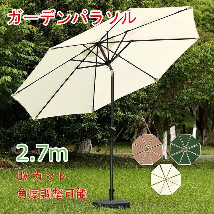【2025新登場】ガーデンパラソル パラソル 日よけ 大型 風に強い (約)直径270cm UVカット 撥水 角度調整可能 オフホワイト hw1257