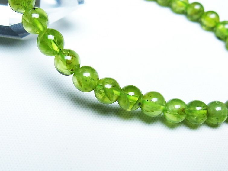 | ■商品名: ペリドットブレスレット ■商品ID: T283-10779 ■商品重量:約 9g ■商品サイズ:内周約:157mm(±5mm)粒直径約:5mm(±0.5mm) 【ペリドット(橄欖石)】 ペリドットは陽光を透かした夏の葉のような、明るく透明な黄緑の石です。その外見からも8月の誕生石として相応しく、明るく闇を吹き飛ばすエネルギーを持つとされています。 太陽の石とも呼ばれるペリドットは、闇夜でも輝く性質から、暗闇に光をもたらし困難の中でも希望を見出す力があると古くから信じられてきました。自身の持つ暗いエネルギーを発散させ、太陽の光を当ててくれるとされています。ネガティブなエネルギーから身を守るお守りとしても有効とされています。 暗い妄想や怒り、悲しみなどのマイナス感情が気づかぬうちに沸いてくる時には、元となる心の傷を癒し明るく前向きに進めるように手助けするとされています。また、自信をなくして落ち込んでいる時には、希望をもたらすとされていますので、落ち込み傾向にある方にもお勧めです。 ■ワンポイント情報 出会いを恋に発展させたり、社交性を広げ縁や人脈を増やすとされ、意中の人にも上手く近づけるようになるとされていますので、片思いの人の強力なお守りといえるかもしれません。また浮気がちな相手に持たせると浮気封じになるとされていたり、家庭を円満にするとされていますので既婚者にもお勧めです。 |